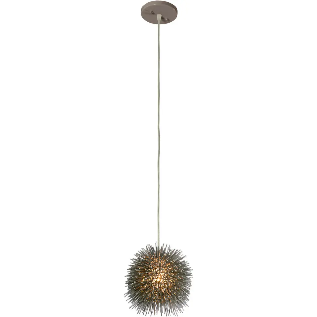 Despite its appearance, the Varaluz Urchin Mini Pendant creates a surprisingly friendly glow. It's inspired by the spiny sea creature itself and features spines composed of recycled steel. The steel is bent around a metal cage which gives it its shape. Hang several different finish combos together for a truly magical effect.