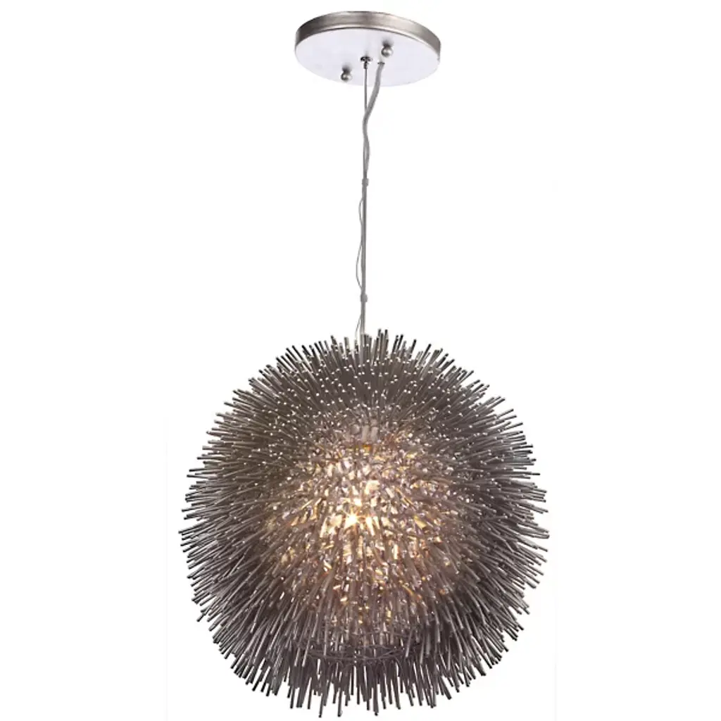Named for the spiny sea creature, the Varaluz Urchin Pendant results in the same wonder and magical appearance as its underwater inspiration. Each spine is made from recycled steel that is bent around a wire frame, giving it its characteristic shape. The Urchin produces an alluring glow and looks especially attractive when several are hung together in a cluster.