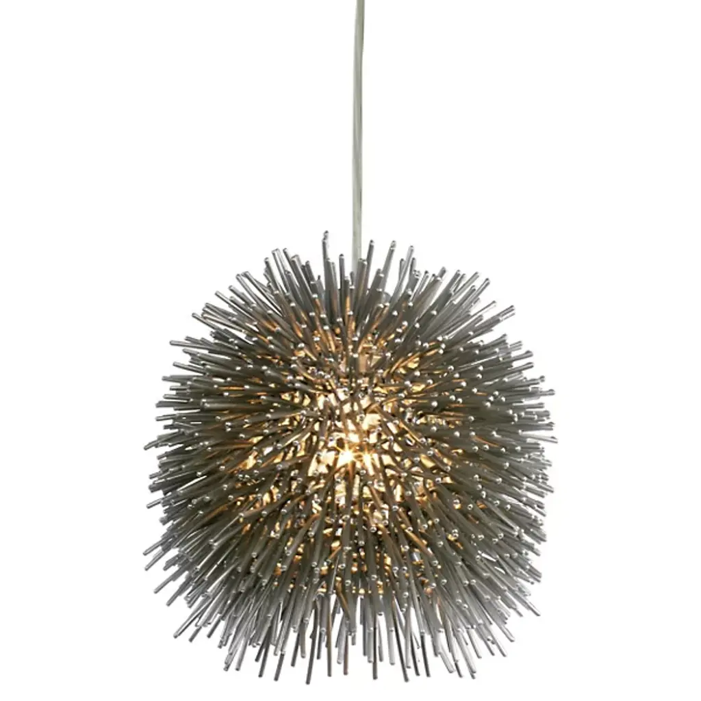 The itty bittiest Urchin there is. But while the Varaluz Urchin Uber Mini Pendant may be small, it still commands a whole lot of attention. Its spiky steel shade somehow manages to look almost fluffy, given a sense of lightness by the cheerful array of available colors and the warm glow of the halogen bulb inside.