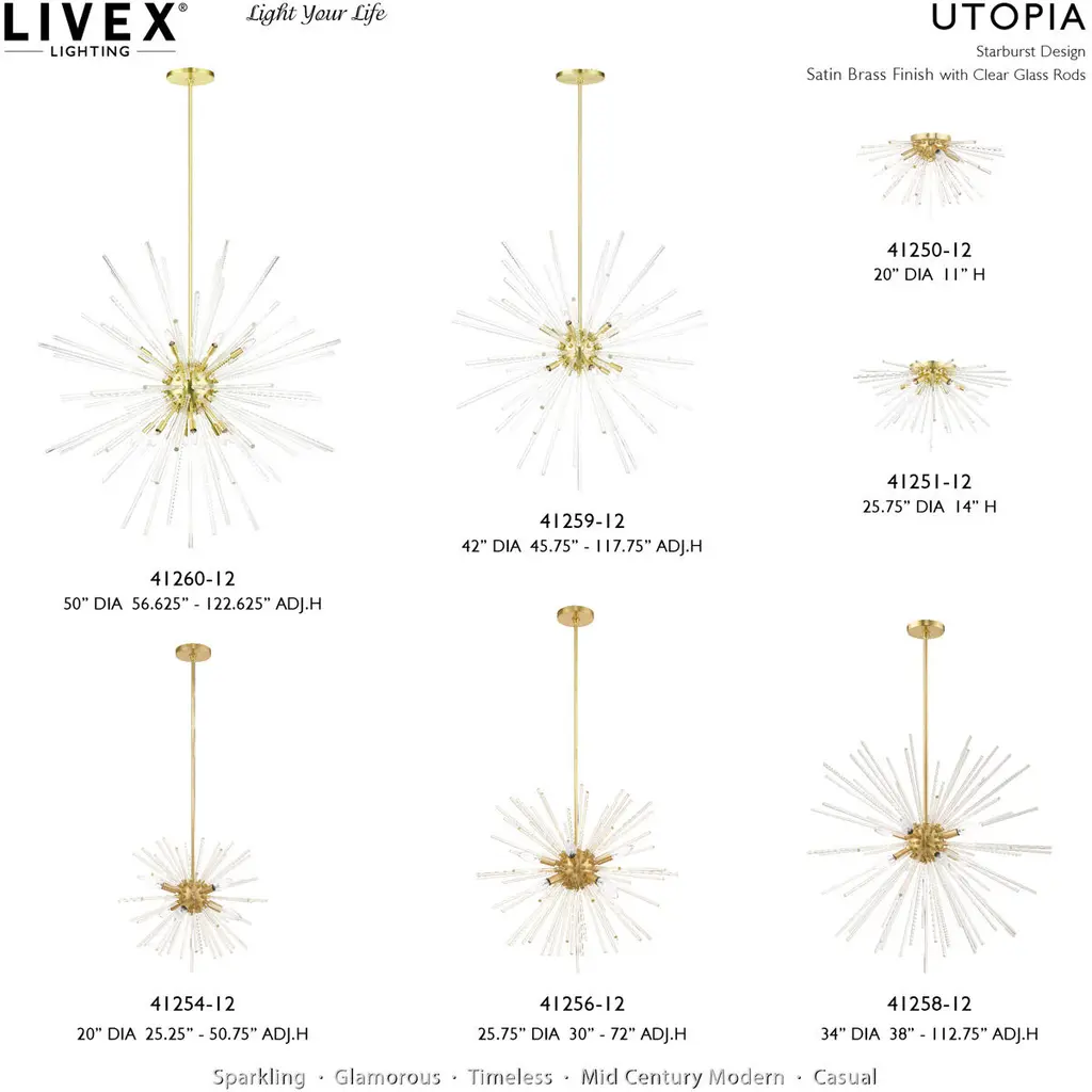 Utopia 12 Light 42 Inch Satin Brass Foyer Pendant Chandelier Ceiling Light