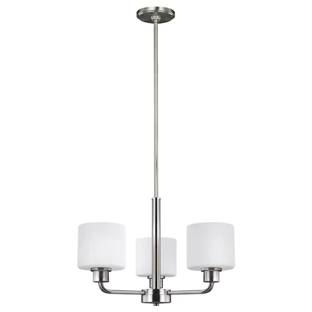 Utopia 3 Light 21.5 Inch Satin Nickel Pendant Ceiling Light In Matte White Glass