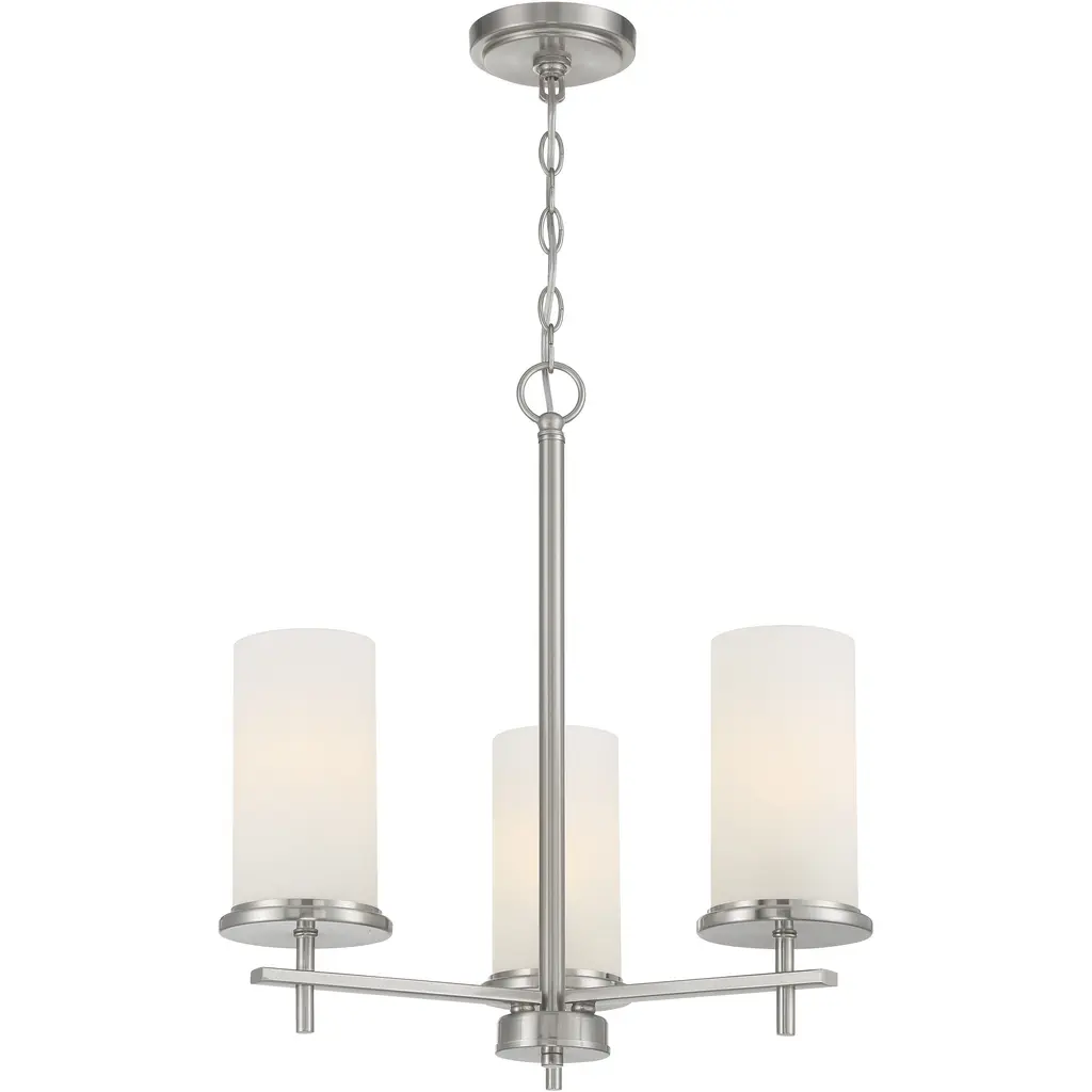 Utopia 3 Light 21.5 Inch Satin Nickel Pendant Ceiling Light In Matte White Glass