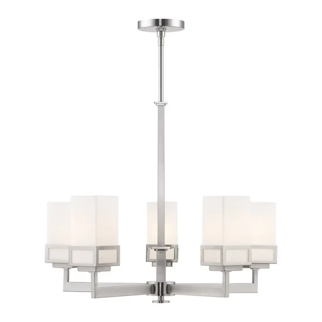 Modern and geometric design elements give the Utopia Collection a striking presence. This gorgeous fixture features a sharply squared off frame, softened by a round glass holder that secures a cylindrical glass shade.