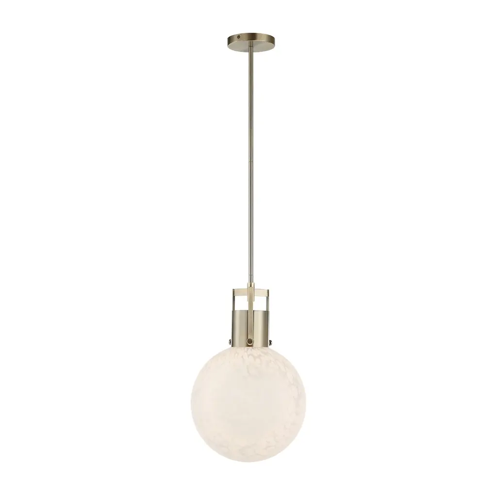 Uttermost's huch pendant features an upper cap with architectural crossbar accents with an etched spotted glass globe giving warmth and ample light. 1-60 watt max edison socket. Bulbs not included. Supplied with 15' wire, 3-12" stems and 1-6" stem for adjustable installation.Features:Dimensions:Electrical Specifications: