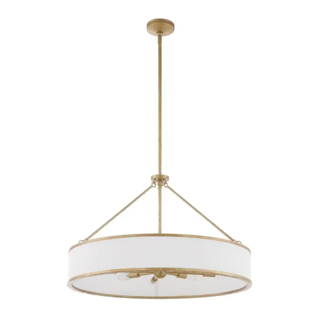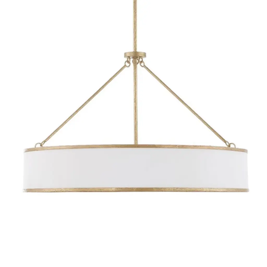 The Uttermost Algiers 8 Light Drum Pendant showcases a bold, balanced design that merges industrial edge with soft elegance. With a commanding 19-inch overall height, this pendant features a clean fabric drum shade suspended within a wide, architectural iron frame. The open framework creates visual lightness while enhancing the pendant’s structural presence, making it perfect for dining areas, open-concept living rooms, or entryways. Designed for 110V systems, the Algiers pendant casts generous ambient light through its eight bulbs, delivering both illumination and high-end design in one cohesive piece. Generous 8-light design provides ample lighting for larger rooms19-inch height offers presence without overwhelming mid-height ceilingsIron frame adds industrial edge while the fabric shade softens the glowVersatile look that complements both rustic and modern decor themesCreates a stylish focal point in dining rooms, living areas, or foyersBlends hard and soft materials for a unique balance of strength and elegance