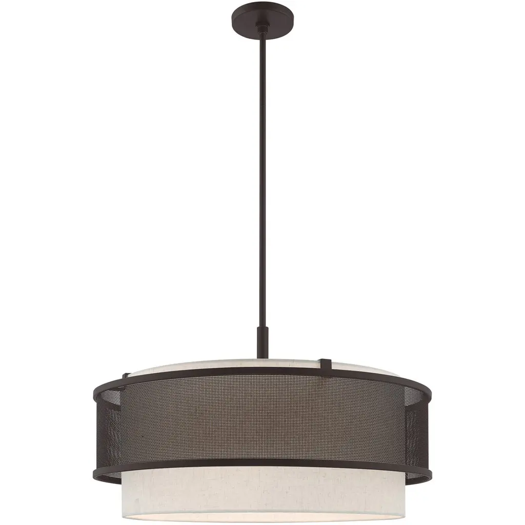 Uttermost Pendant Light 22" Wide Farmhouse Frosted Glass Burlap Weave Drum Shade Fixture For Dining Room House Kitchen Entryway