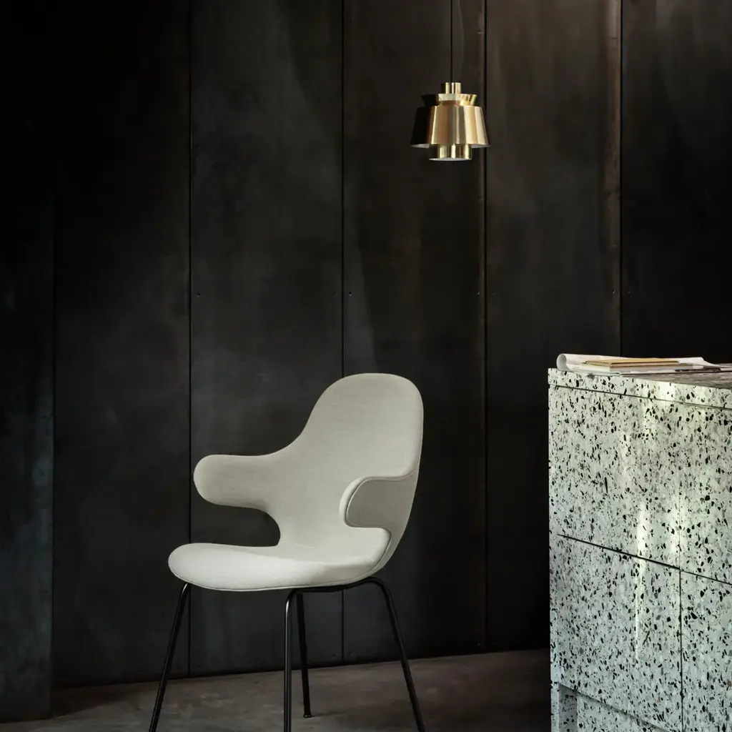 To Jorn Utzon, his father's naval engineering drawings became a lifelong fascination with ships and boats, along with light. More than a decade before Jorn Utzon created his masterpiece, the Sydney Opera House, he put his child- hood fascination into this pendant, combining successfully the smoothness of the lines of a ship with the source of light for the first time. The choice of white or polished chrome finish reminds one of the waves and the northern light. Please Note: the bulb is not included.