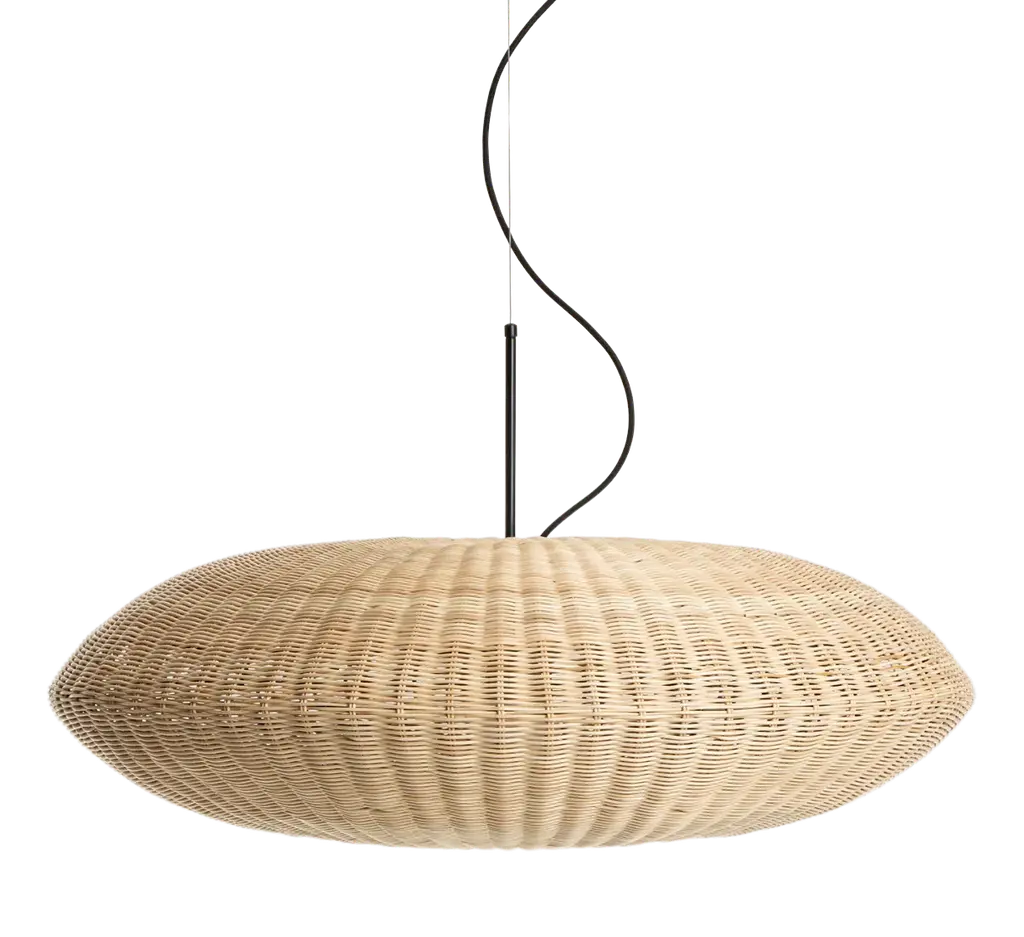 Woven lighting takes dramatic form in the Valar pendant light. A jute shade swoops with a modern edge, offering casual sophistication with a striking pendant design.