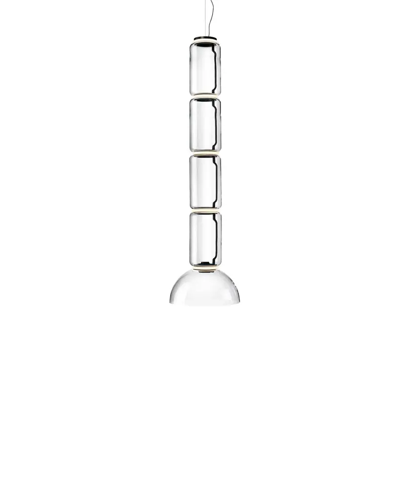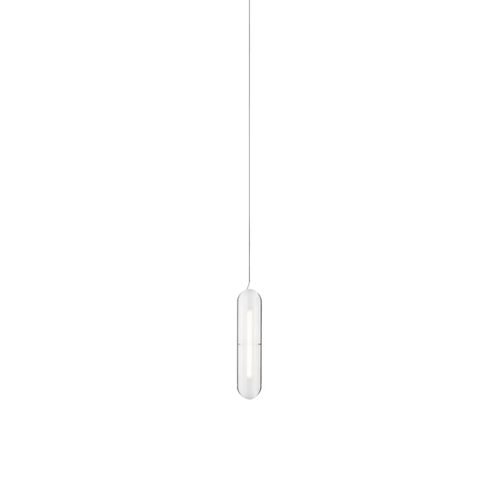 In vertical formation that ranges from a single unit to multiples up to 6 in length, designer Caine Heintzman creates a striking linear pendant for his Vale System. Placing the sculptural LED modules in an end-to-end arrangement brings a glowing column of warmly soft and multidirectional illumination diffused through each textured acrylic lens.