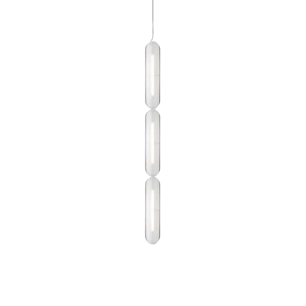 In vertical formation that ranges from a single unit to multiples up to 6 in length, designer Caine Heintzman creates a striking linear pendant for his Vale System. Placing the sculptural LED modules in an end-to-end arrangement brings a glowing column of warmly soft and multidirectional illumination diffused through each textured acrylic lens.