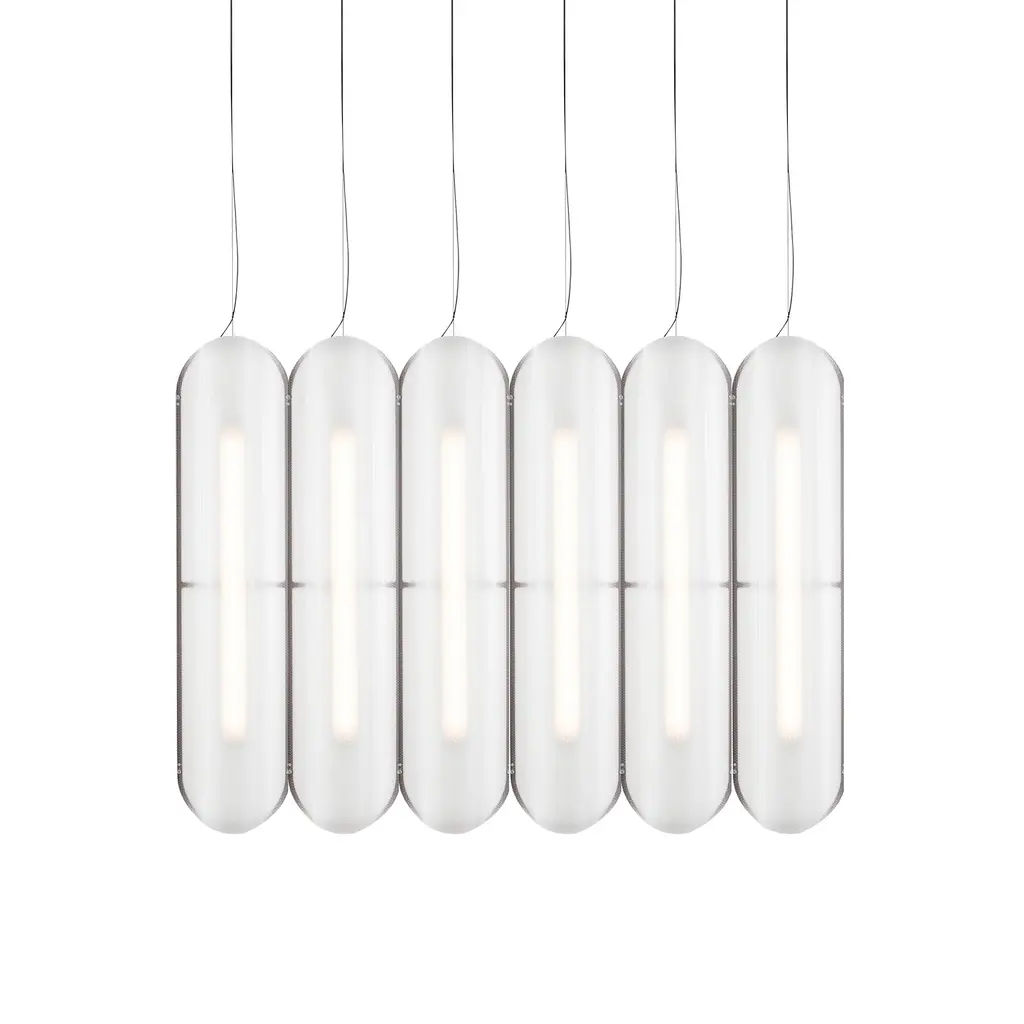 With its elongated contours vertically aligned, this version of designer Caine Heintzman's Vale System allows for multiples of the sculptural LED fixture in a variable side-by-side arrangement. From a single unit to a bank of fixtures up to 6 wide, it lends a warmly soft and multidirectional glow diffused throughout.
