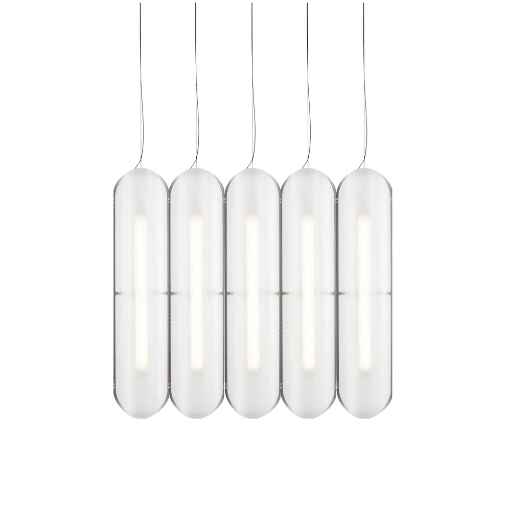 With its elongated contours vertically aligned, this version of designer Caine Heintzman's Vale System allows for multiples of the sculptural LED fixture in a variable side-by-side arrangement. From a single unit to a bank of fixtures up to 6 wide, it lends a warmly soft and multidirectional glow diffused throughout.