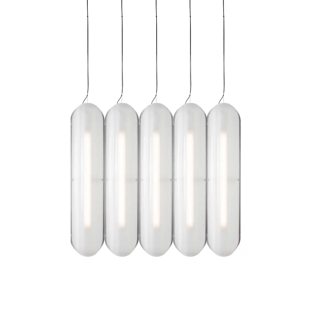 With its elongated contours vertically aligned, this version of designer Caine Heintzman's Vale System allows for multiples of the sculptural LED fixture in a variable side-by-side arrangement. From a single unit to a bank of fixtures up to 6 wide, it lends a warmly soft and multidirectional glow diffused throughout.