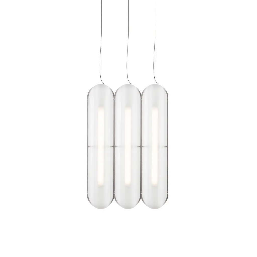 With its elongated contours vertically aligned, this version of designer Caine Heintzman's Vale System allows for multiples of the sculptural LED fixture in a variable side-by-side arrangement. From a single unit to a bank of fixtures up to 6 wide, it lends a warmly soft and multidirectional glow diffused throughout.