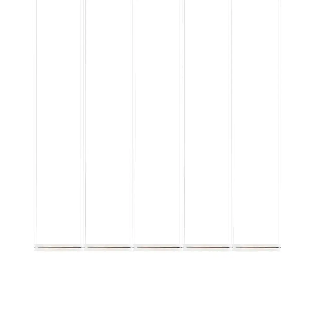Designer Caine Heintzman's ingenious Vale System adds a horizontally oriented X-Axis pendant ranging from a single LED module up to 6 units placed end-to-end. The seemingly floating fixture hangs by thin wires from the ceiling and creates a softly warm and multidirectional illumination via each prismatic acrylic lens.