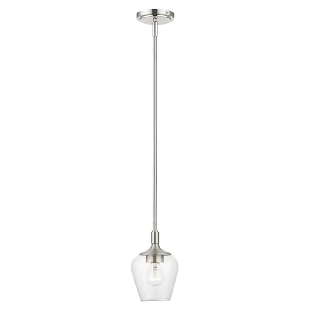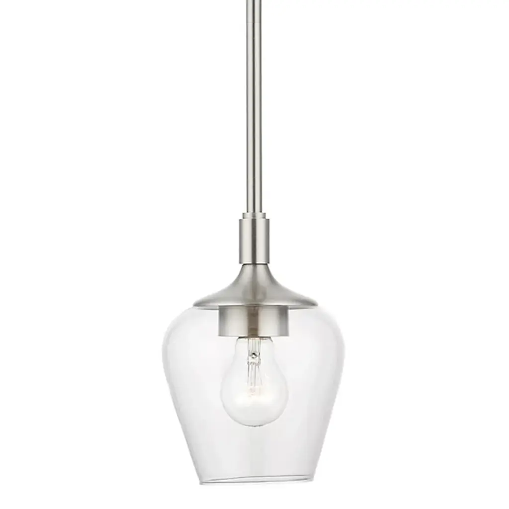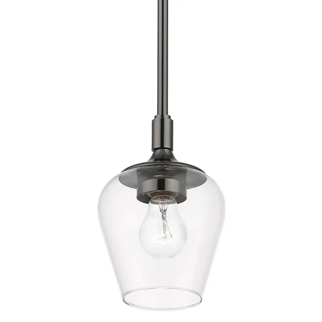 The Valentina Single Pendant by Alder & Ore has understated elegance. It features minimal details and clear curved glass with and metal framework, bringing a transitional aesthetic to your home décor. This fixture’s incandescent lamp is arranged in a downward orientation. The neat contours of the glass shade gives this piece a look of refinement.