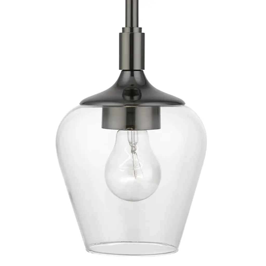The Valentina Single Pendant by Alder & Ore has understated elegance. It features minimal details and clear curved glass with and metal framework, bringing a transitional aesthetic to your home décor. This fixture’s incandescent lamp is arranged in a downward orientation. The neat contours of the glass shade gives this piece a look of refinement.