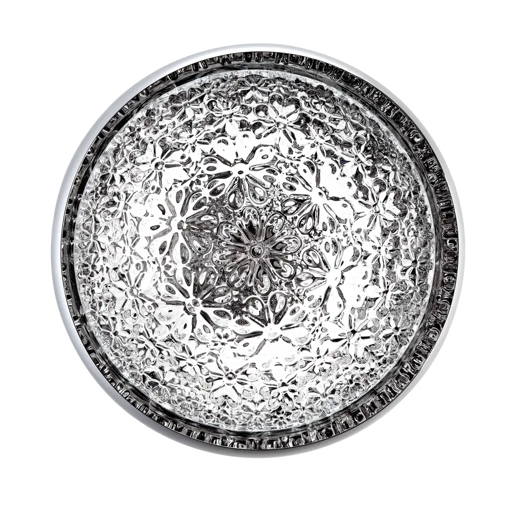 Valentine might suggest a suspended car headlight, given its similar optic structure. But Marcel Wanders’ design takes a luxurious turn with a faceted blown-glass diffuser crafted with a floral motif. Surrounded by a spun-metal shade in gleaming metallic and enhanced by a magical mirrored interior, the pendant radiates a warm bouquet of incandescence.