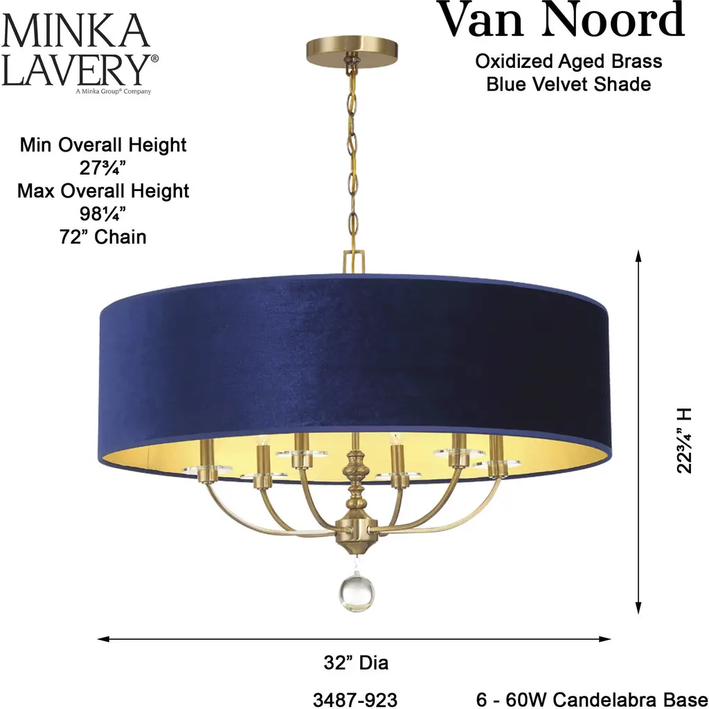 This 6 light Pendant from the Van Noord collection by Minka-Lavery will enhance your home with a perfect mix of form and function. The features include a Oxidized Aged Brass finish applied by experts. This item qualifies for free shipping!