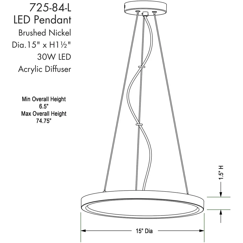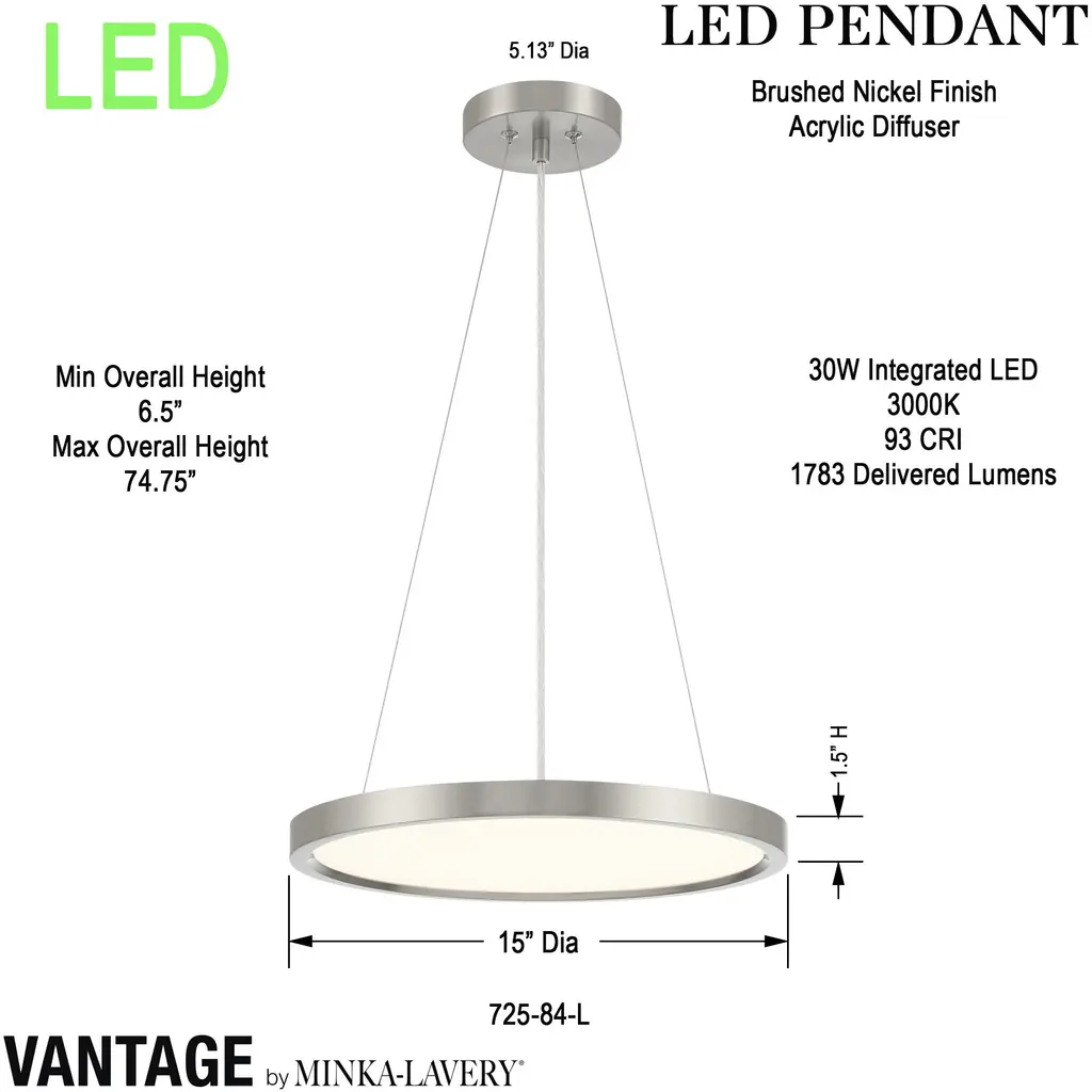 Vantage Led 15 Inch Brushed Nickel Pendant Ceiling Light, Round