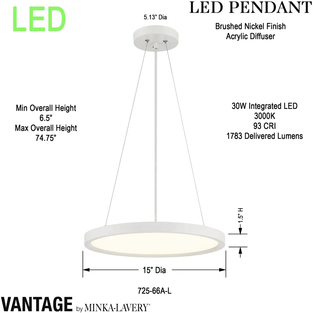 Vantage Led 15 Inch White Pendant Ceiling Light, Round