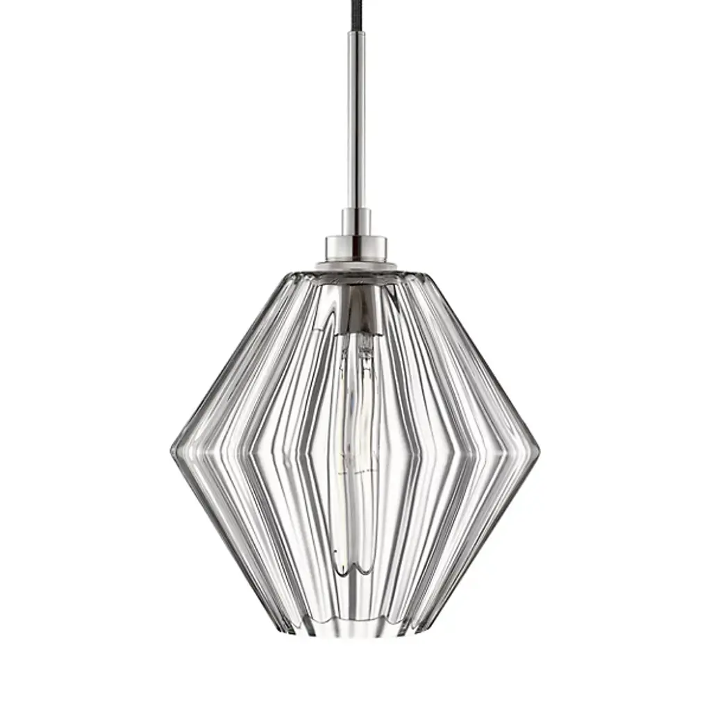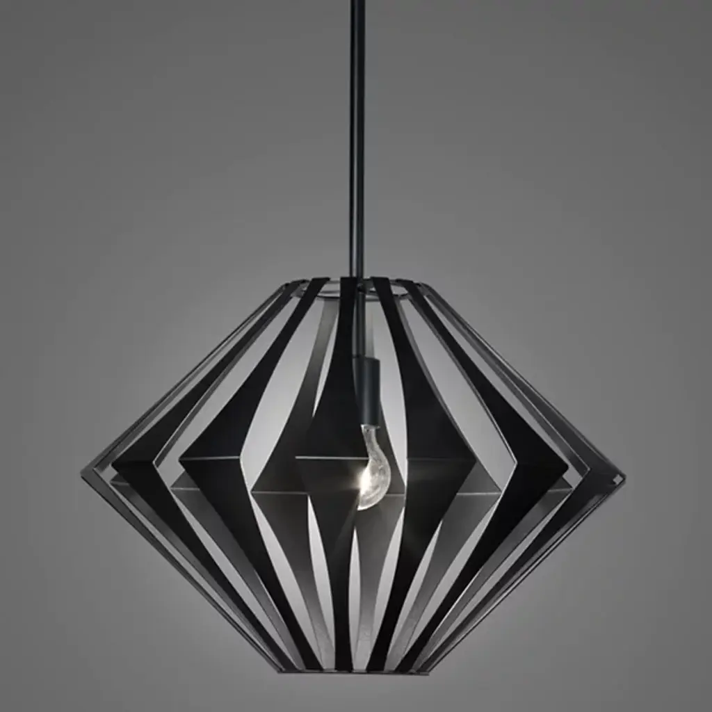 Clean lines and sharp angles make the Vasi 20456 Pendant by Ultralights a stunning addition to modern interiors. Its angular silhouette is comprised of a set of flat metal bars, widening and folding at the center to create a striking diamond shape. The bars allow enough space to view its lamping suspended at its center, creating a warm and inviting light while casting expressive shadows throughout the room. Clean and contemporary, this fixture instantly heightens the style of any décor.