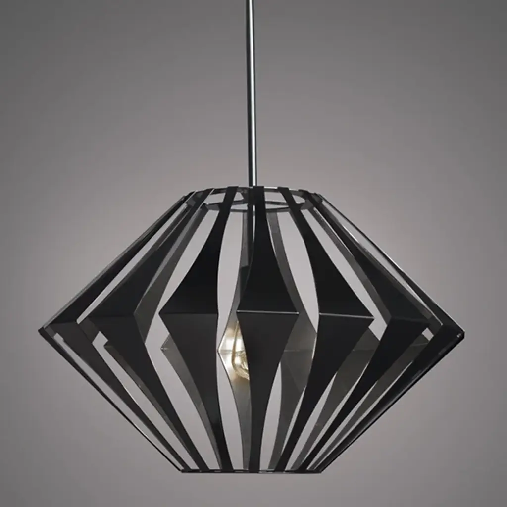 Clean lines and sharp angles make the Vasi 20456 Pendant by Ultralights a stunning addition to modern interiors. Its angular silhouette is comprised of a set of flat metal bars, widening and folding at the center to create a striking diamond shape. The bars allow enough space to view its lamping suspended at its center, creating a warm and inviting light while casting expressive shadows throughout the room. Clean and contemporary, this fixture instantly heightens the style of any décor.