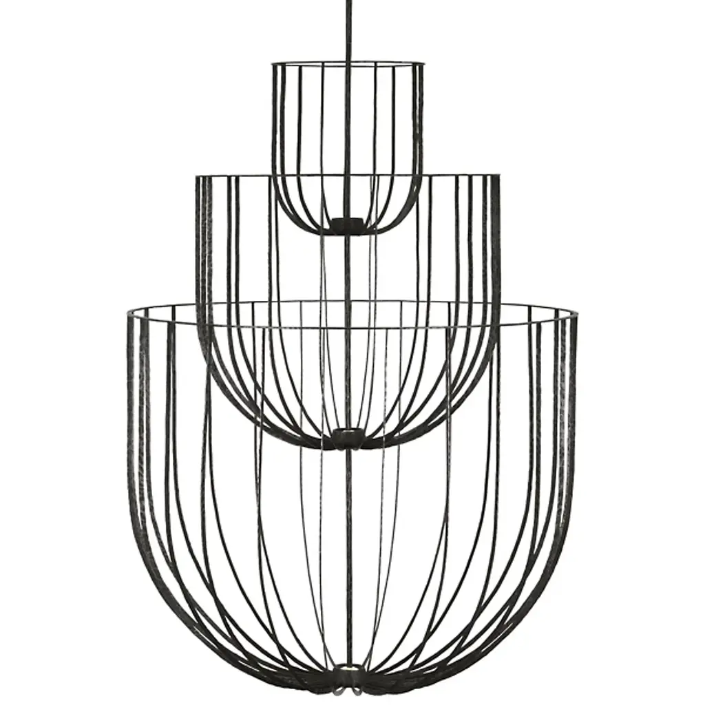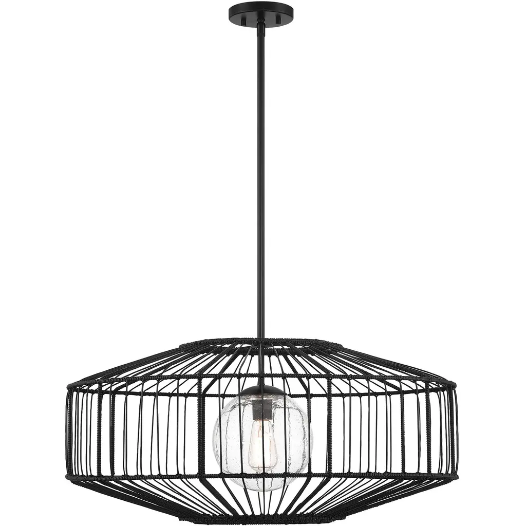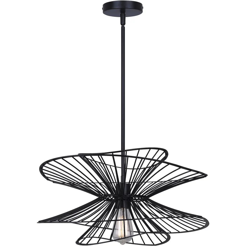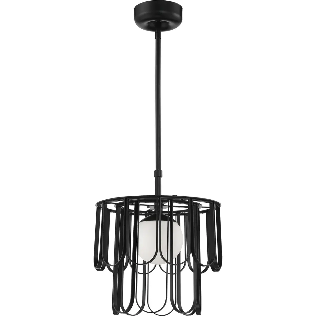 Bring a bold touch of modern design to your home’s interior décor with the addition of the Vasi 20466 Pendant by Ultralights. A disc-shaped canopy drops a thin downrod to suspend a tapered metal basket made of slender horizontal rings. Becoming smaller at they reach the end, each ring is stacked in an even distance between the next, forming a clean line pattern against the fixture’s frosted glass diffuser. Its light is held at the center of the piece, sending a balanced layer of light over its surroundings.