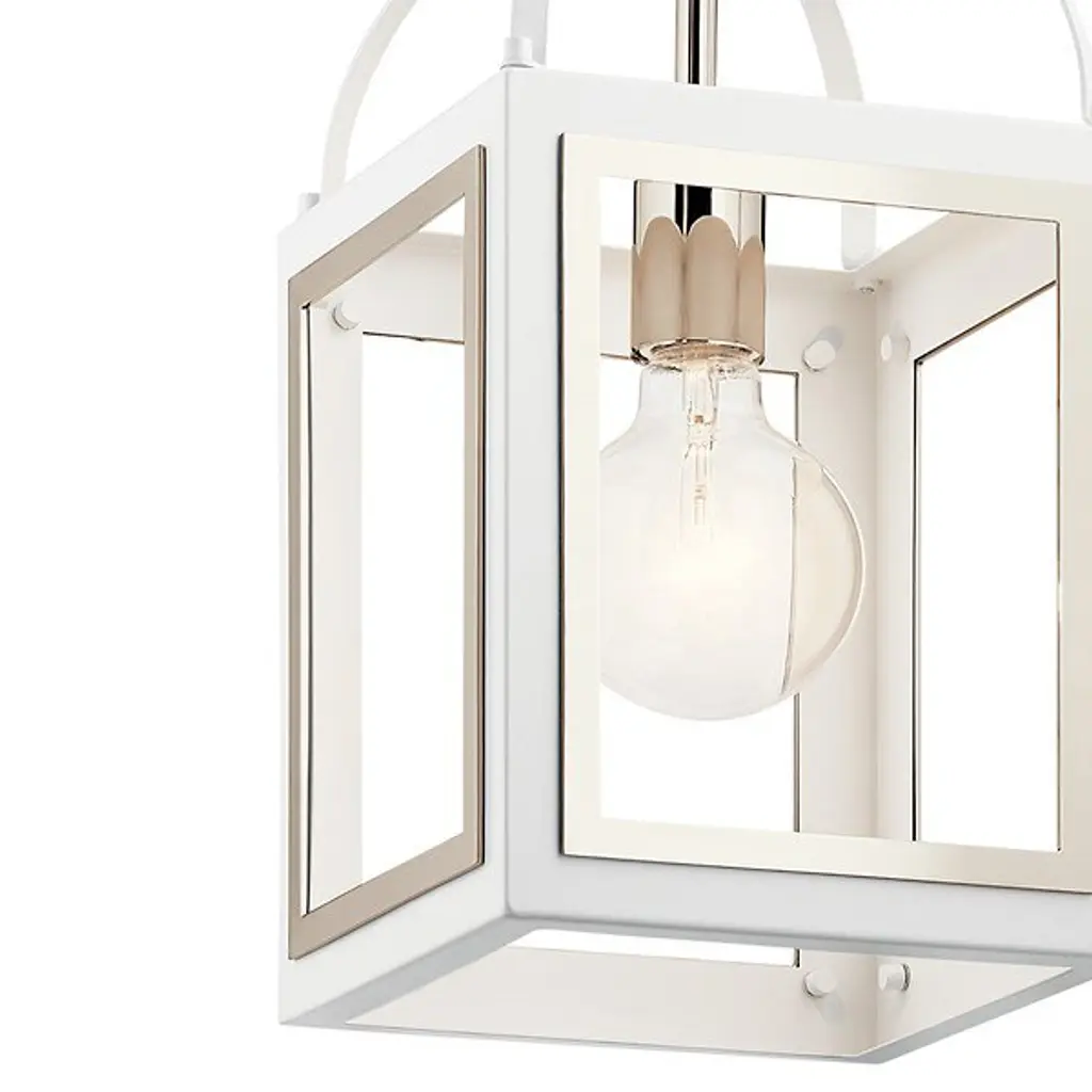 A crisp and elegant example of modern lighting, the Vath Mini Pendant from Kichler sends out a bright and even layer of light into the home while elevating the décor of the room. Smooth steel comes together to form an open square shade that gently encloses on a single hanging bulb. The light shines outward in each direction, gracefully coating the surrounding room. Each side opening is lined with contrasting metal that basks in the light.