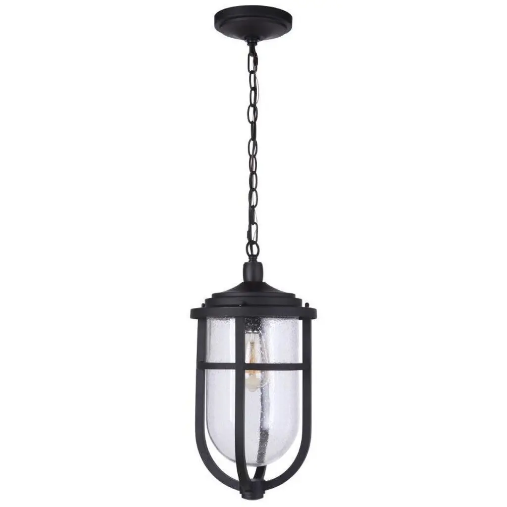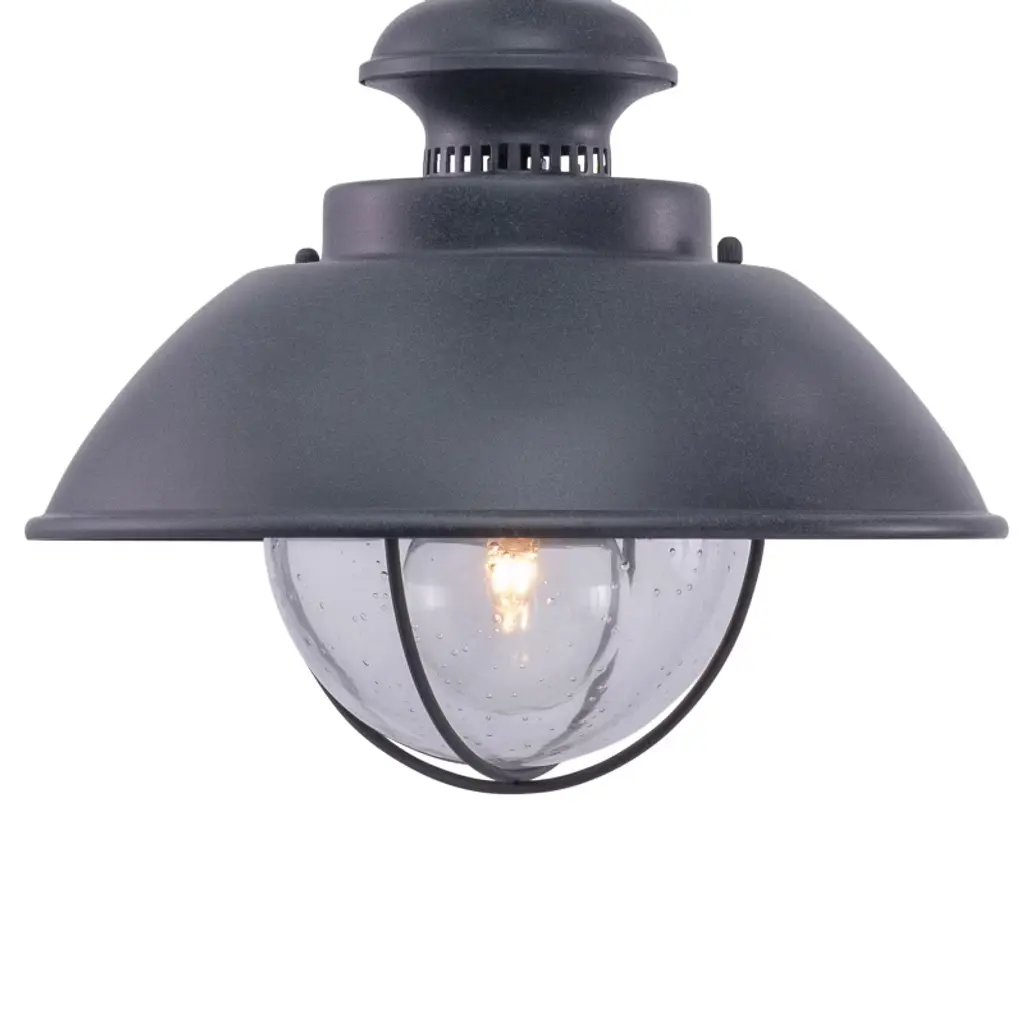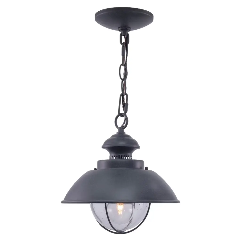 Vaxcel Harwich 1 Light Coastal Outdoor Barn Dome Pendant Clear Glass, Textured Gray