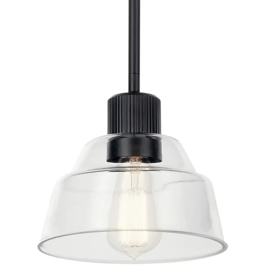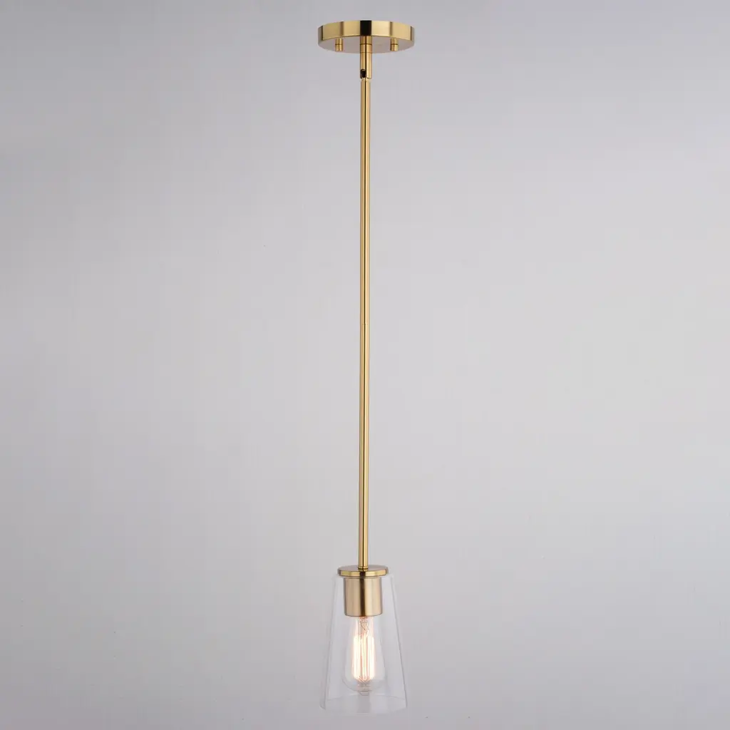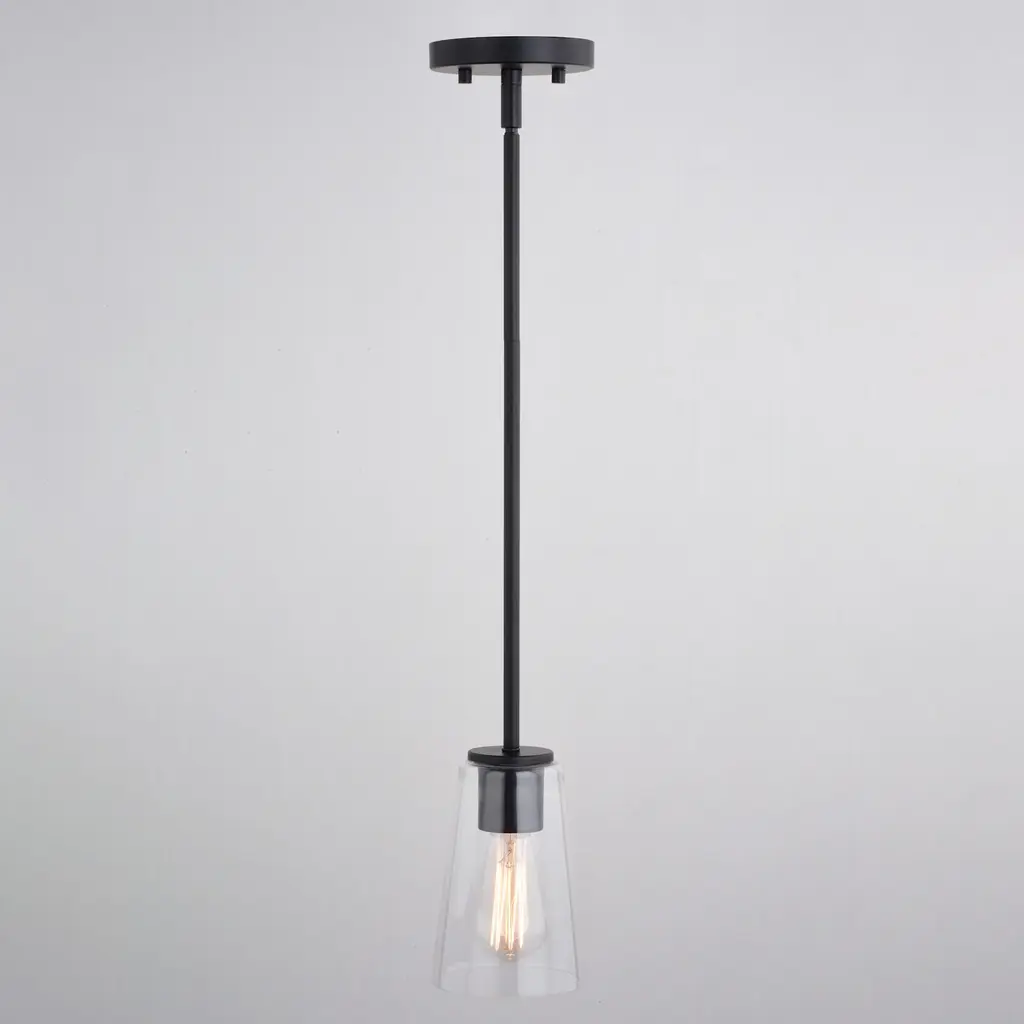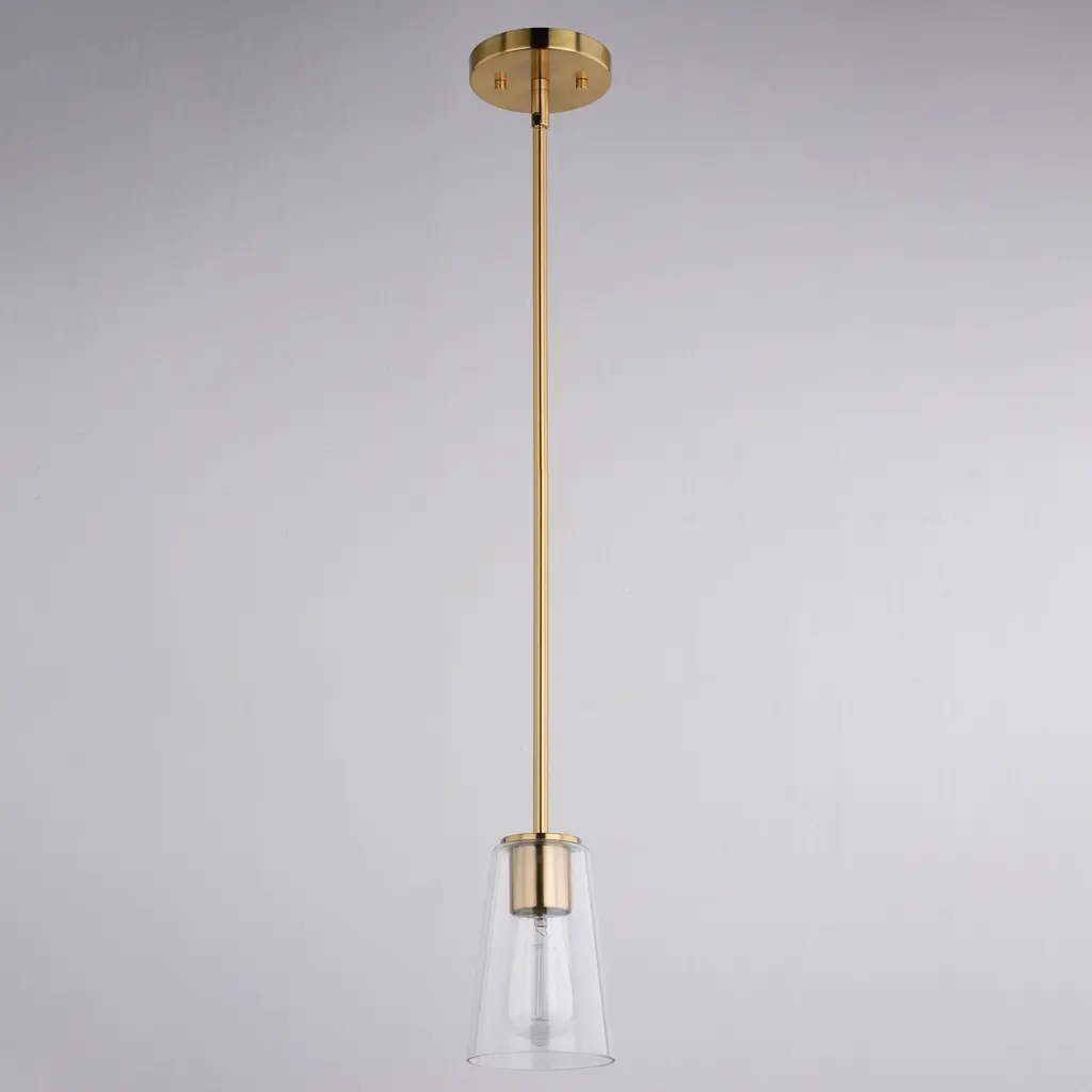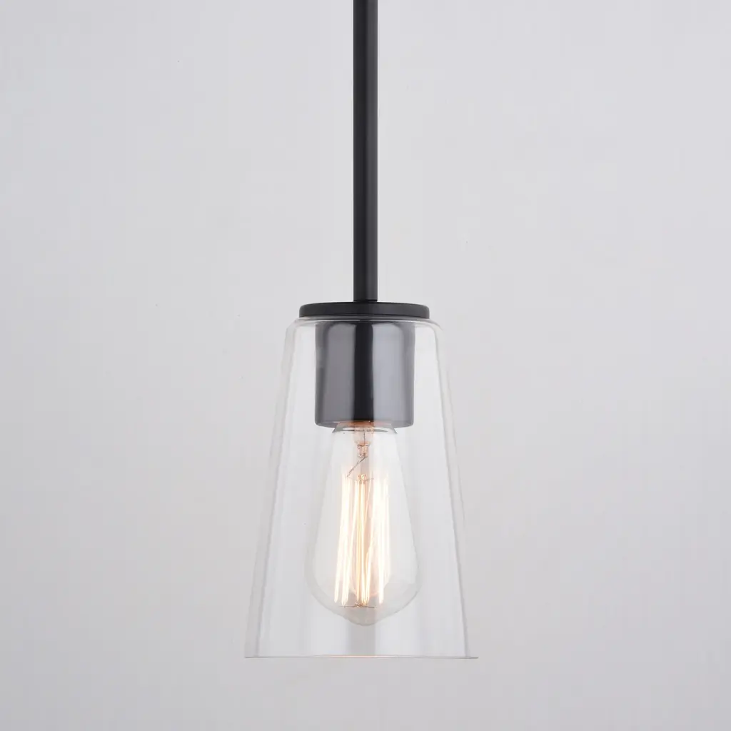 The Beverly collection provides a modern take on classic elegance. The down rod supports the tapered glass shade. Round discs hold the glass creating an inviting aesthetic. Add this versatile one light pendant in groups above any kitchen island or dining area for the ultimate addition of transitional style.Features:Dimensions:Electrical Specifications:
