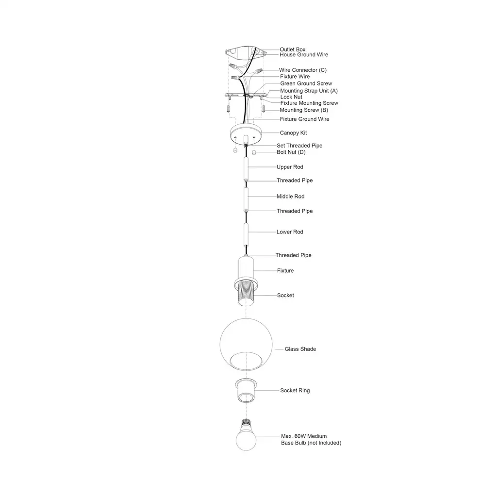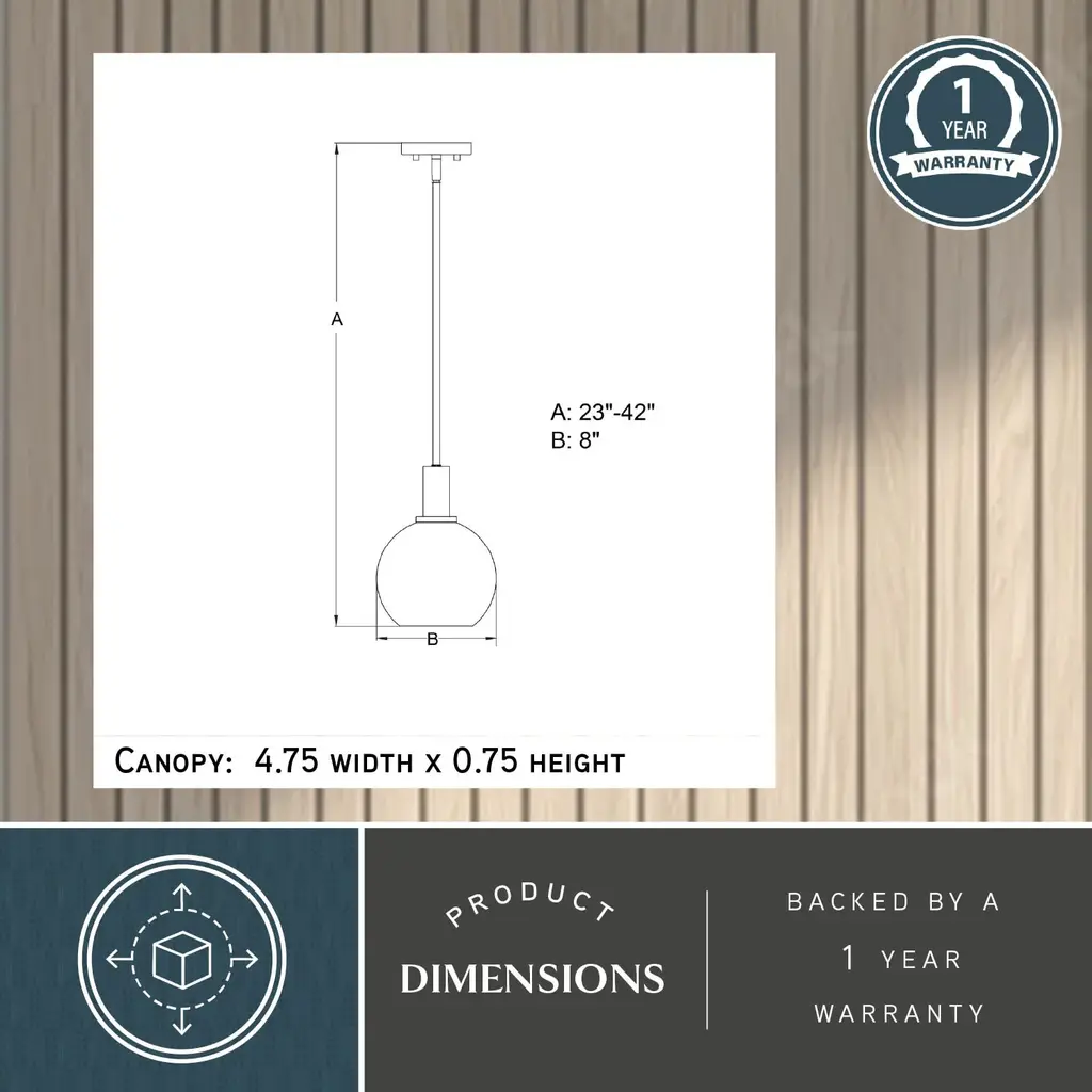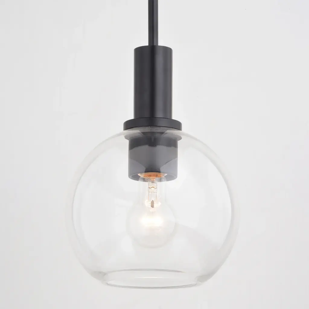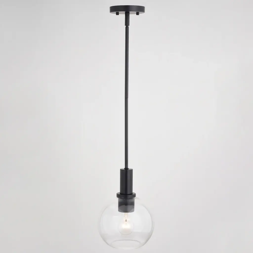 The Marshall collection is transitional style with a contemporary flair at a competitive price. A stately central column supports a clear glass globe for the perfect balance of dark versus light. Height is adjustable with the included down rods; compatible with sloped ceilings. Install this mini pendant individually or in a group; ideal for kitchens, dining areas, or bar areas.Features:Dimensions:Electrical Specifications: