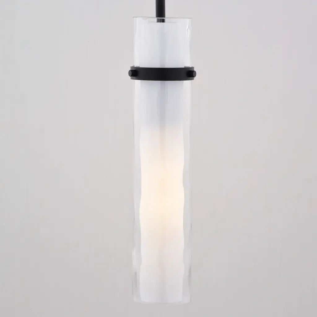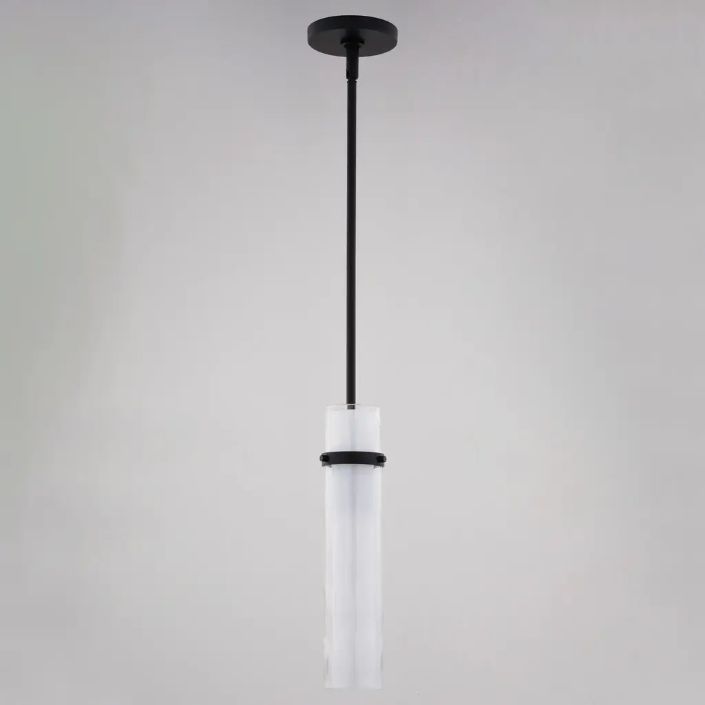 The Vilo collection is a perfect blending of simplicity and sophistication. Flat planes are a striking compliment to the more softly defined columns of water glass. Ample light emanates from the vertical glass shades creating a dramatic effect. These fixtures offer a classy touch to any contemporary space in your home. Install this mini pendant individually or in a group; ideal for kitchens, dining areas, or bar areas. Height is adjustable with the included down rods; compatible with sloped ceilings.Features:Dimensions:Electrical Specifications: