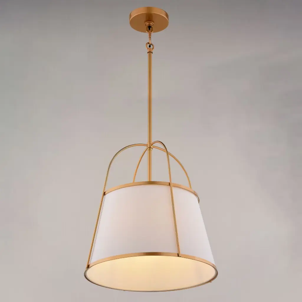 Vaxcel Marion 1-light 15 In. Wide Mid-century Modern Cone Pendant With White Linen Shade, Mystic Gold