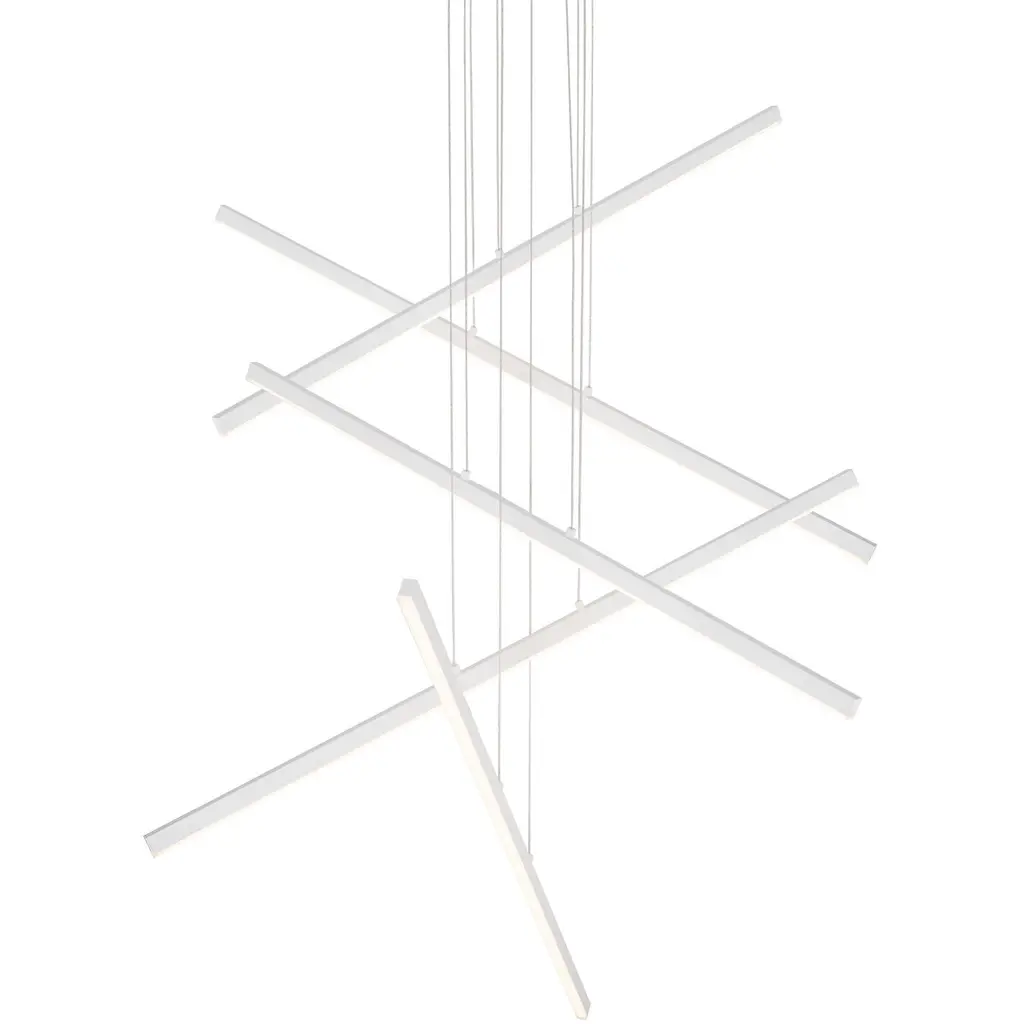 The linear lights can be configured at different heights and angles to create distinct sculptural orientations. Ordered into clean parallels or jumbled in playful asymmetry, Vega can be customized to complement any space.