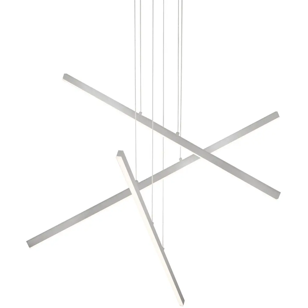 Elegant and modern. The Vega Minor LED Multi-Light Pendant by Kuzco Lighting is a sophisticated and abstract arrangement. Suspended with thin cables, sleek and square profile linear Aluminum arms create a composition that is more minimal than the fixture that inspired this piece. Inset Opal Polymeric diffusers create a beautiful layer of light, and a finely textured finish lends an elegant touch. A refined statement for entryways, dining and entertaining spaces, this multi light pendant adds a dynamic layer of light to its environment.