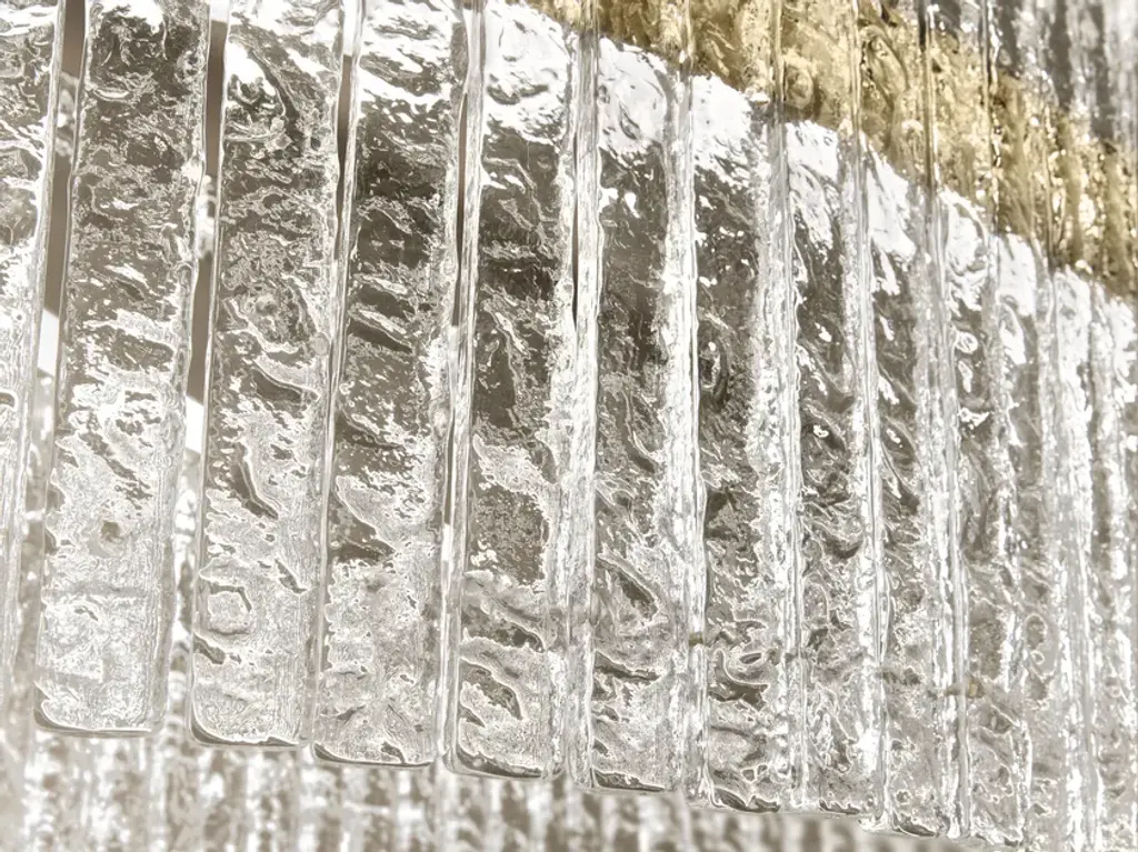 Vegas S OV120 is an LED pendant lamp made of Metal frame with diffuser in strips of rock looking glass. Electrical characteristics87,6 W CRI>90 3000 K – 9344 NOMINAL LM87,6 CRI>90 2700 K – 8906 NOMINAL LMDIMMABLE: 0-10VCE LEDETL LEDCCC LEDCB SCHEME LEDVegas is a collection of lamps having a metal structure with diffuser in anti-reflective glass strips. Led illumination.