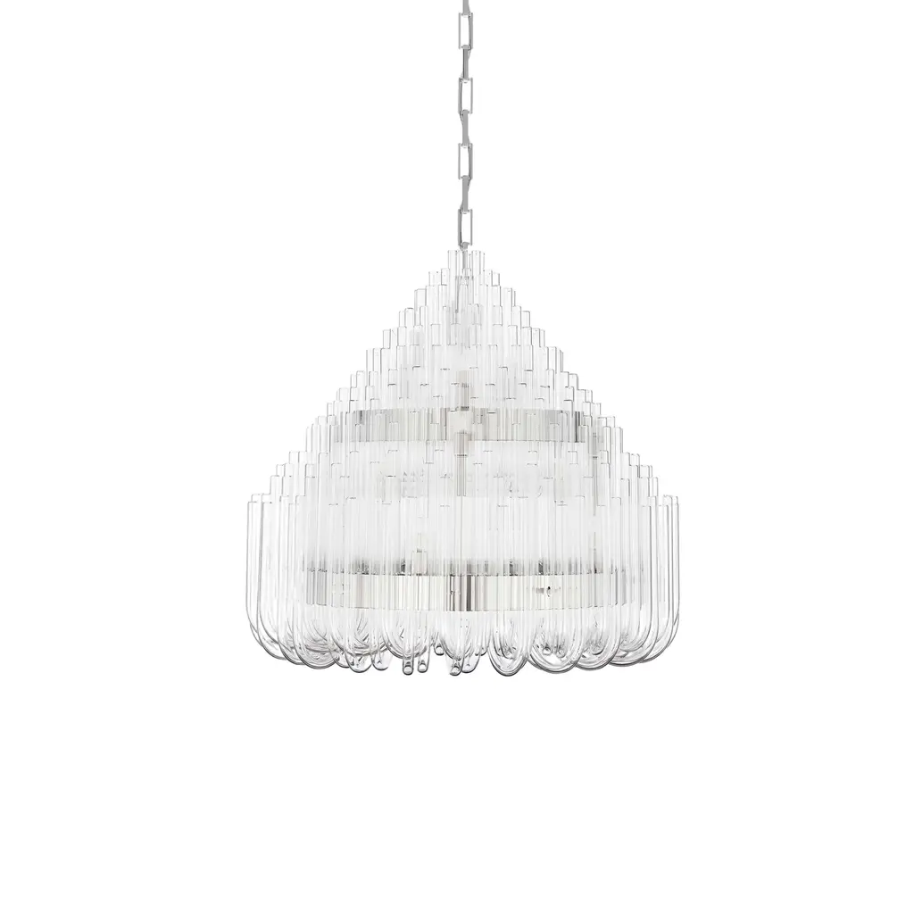 Vegas S VRT140 is a pendant lamp with LED structure in metal with diffuser in rock effect glass strips.Electrical characteristics56 W CRI>90 3000 K – 5973 NOMINAL LM56 W CRI>90 2700 K – 5693 NOMINAL LMDIMMABLE: 0-10VCE LEDETL LEDCCC LEDCB SCHEME LEDVegas is a collection of lamps having a metal structure with diffuser in anti-reflective glass strips. Led illumination.