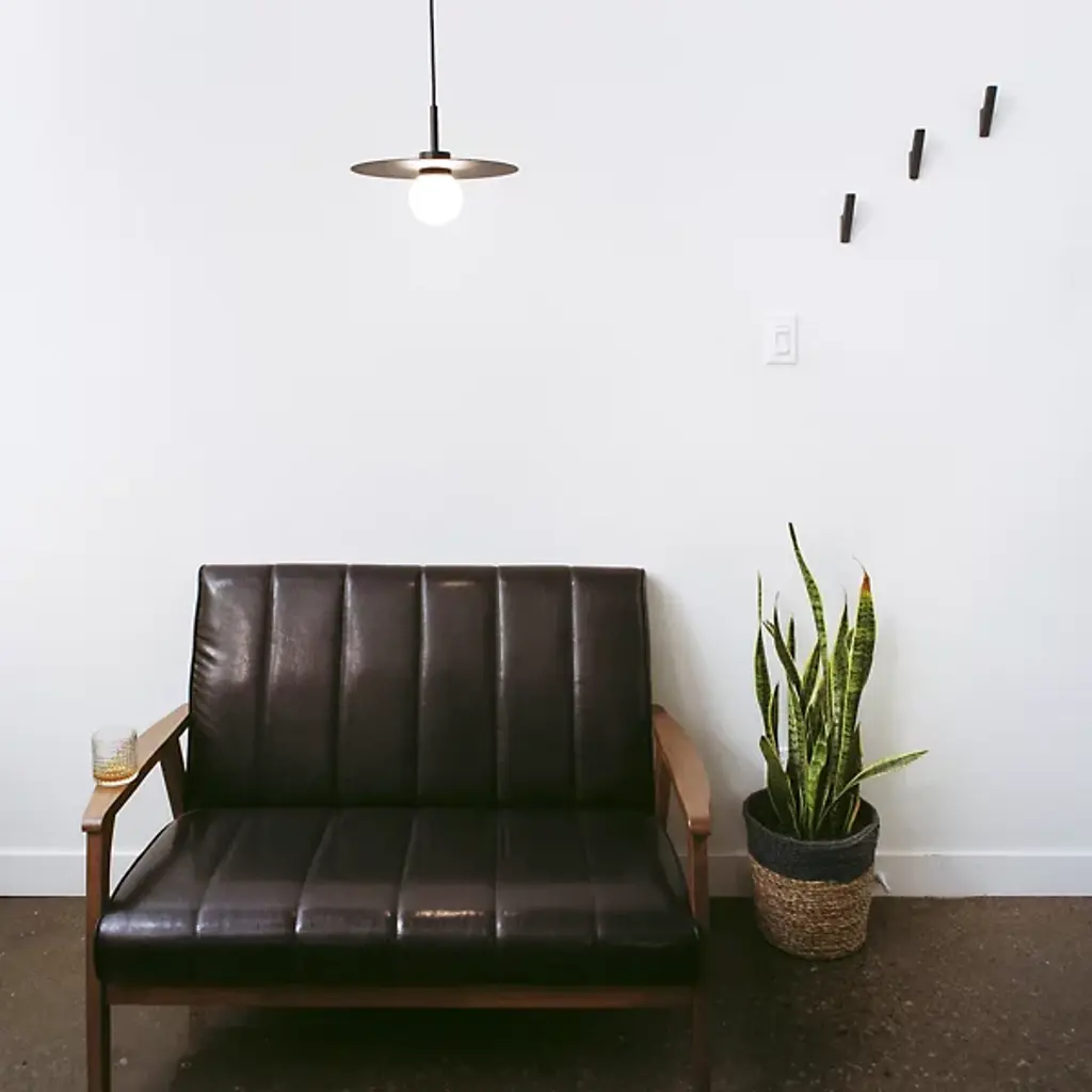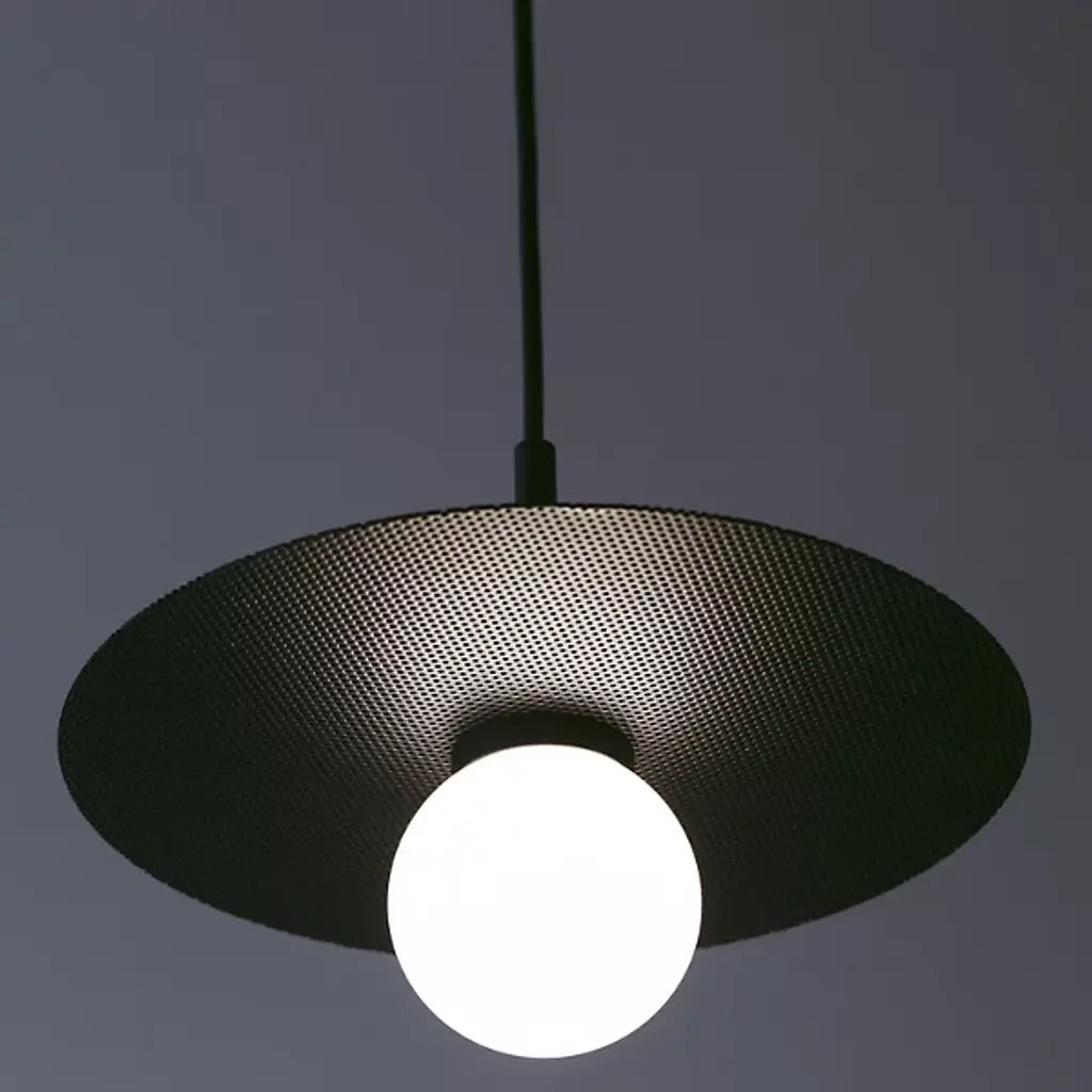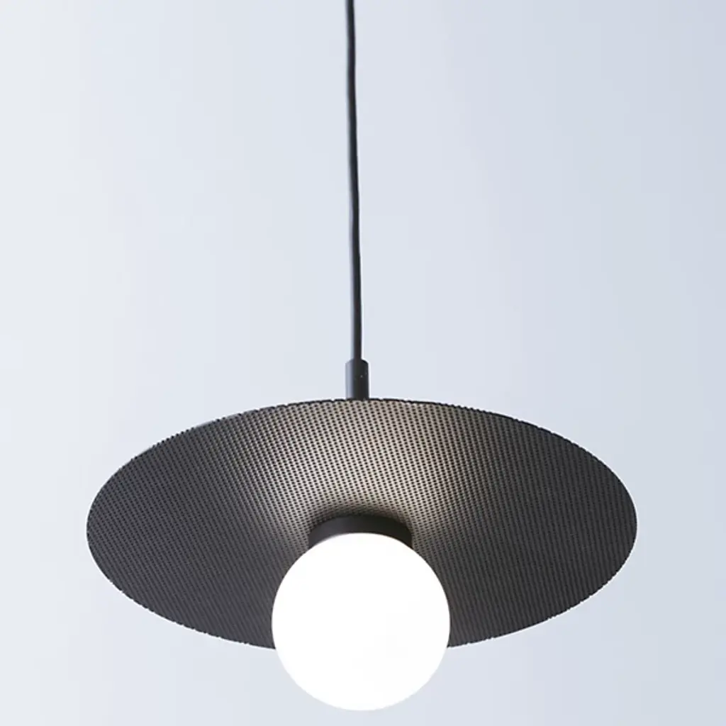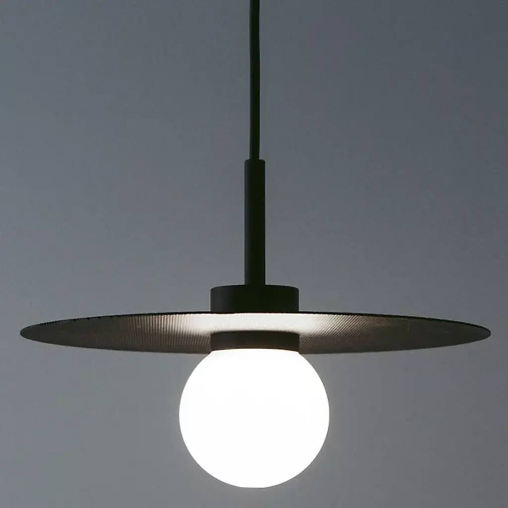 Chic, modern, and constructed with a clean-cut design. The Veil Disc Pendant enjoys a refined and minimalistic aesthetic. Made of punctured Steel, the top of the pendant is a flat saucer that grasps a hand-blown Glass diffuser. Light passes through the shining sphere with ambient illumination. You can stylishly brighten an interior space such as the dining room or kitchen with the Veil Disc Pendant.