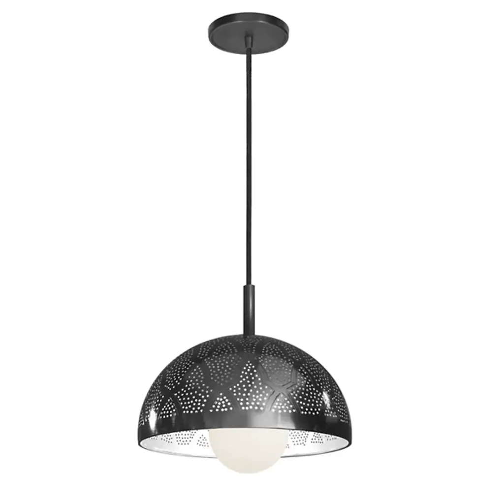 A step-up from the conventional square design without losing the simple aesthetic. The Veil Pendant by Tomnuk Design carries clean-cut charm and beautiful qualities. A textured shade made of Steel and covered in minuscule holes very lightly envelopes a glowing, hand-blown sphere constructed of Glass. Ambient illumination of the Veil Pendant can brighten and adorn a kitchen or dining room.