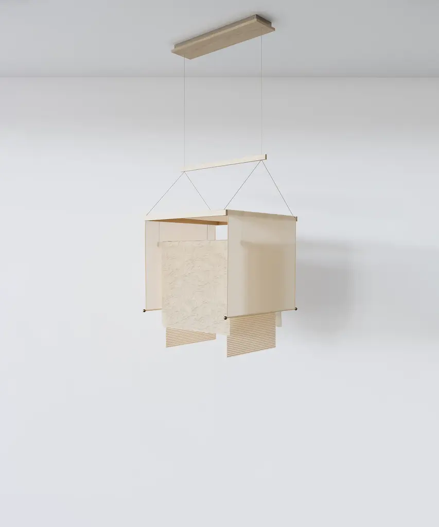 L&G introduces Veil - a lighting collection designed for embracing moments of ephemeral presence. Taking inspiration from Eastern architecture’s sensibilities of warmth and lightness, Veil’s soft glow and collage of textures create an interplay of light, shadow, and pattern to provide an ambience of comfort and wonderment. Veil employs a series of textile panels delicately draped over an elemental wooded framework - setting up a series of collaged soft textures and forms. When illuminated, a concealed internal light source further articulates this dynamic interplay through shadows, highlights, and diffusion. This complex effect achieved by simple means reflects L&G's desire to expose the genuine richness imbued in honest, natural materials. The studio views this as a means for nudging the definition of elevated design towards a more nuanced, mindful, and sensitive approach to craft and formgiving.