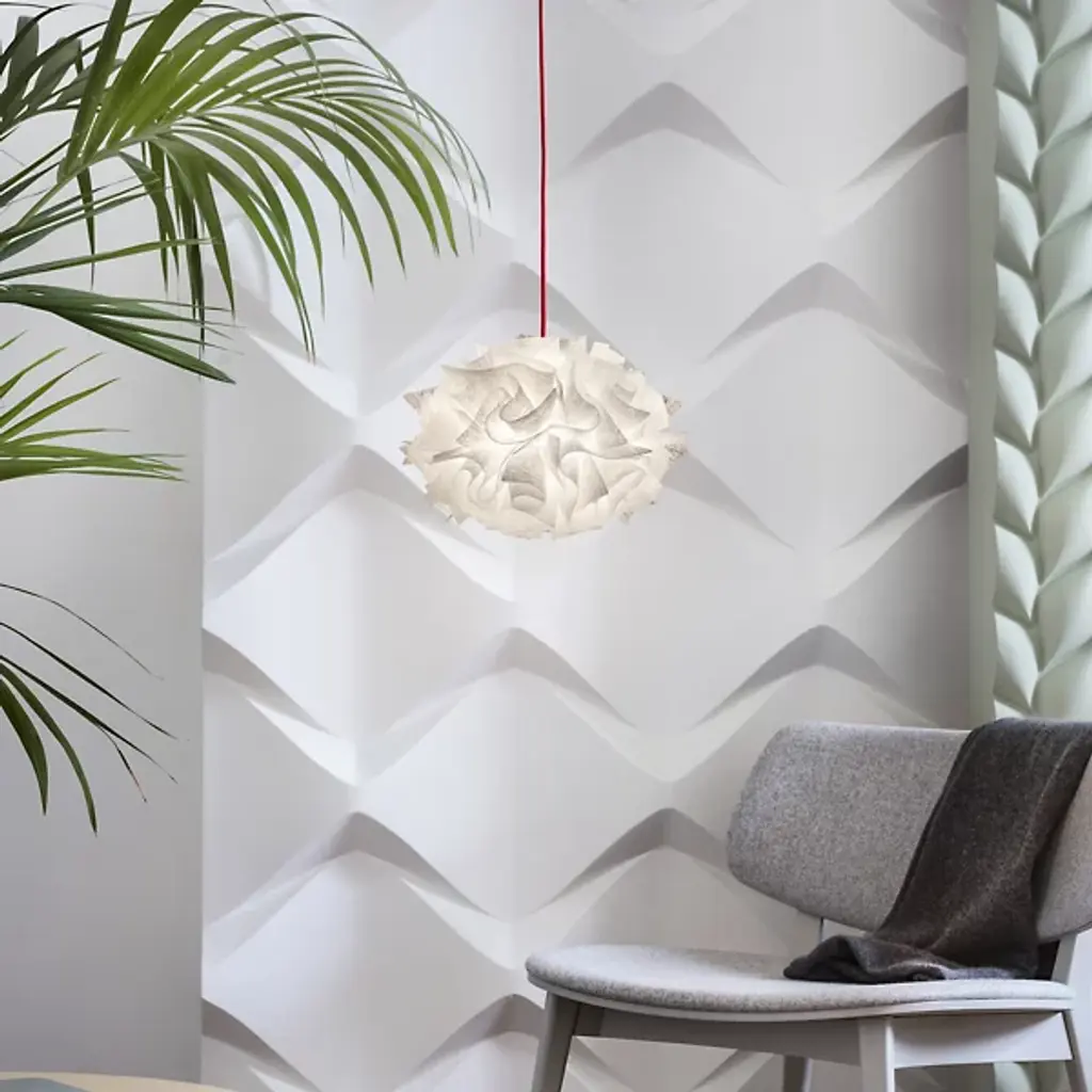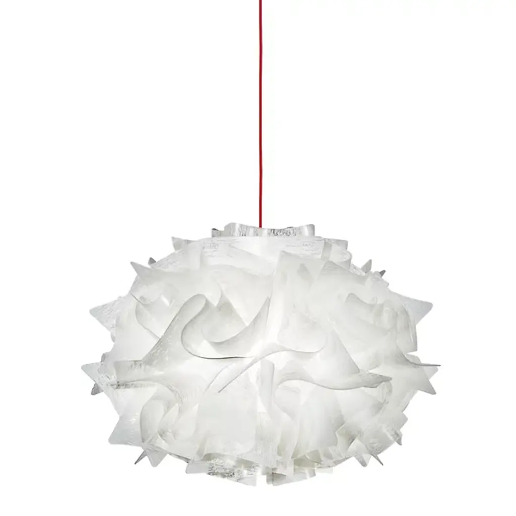 The ethereal form and luminous glow of the Veli Mini Pendant by Slamp captivates a room instantly. From designer Adriano Rachele, this fixture emits light from within layers of curling and folding semi-transparent pieces inspired by the look of high fashion garments. Each facet is made of Opalflex, a patented technopolymer material that is handcrafted into its unique shape, forming a dimensional orb that appears to be as soft as silk.