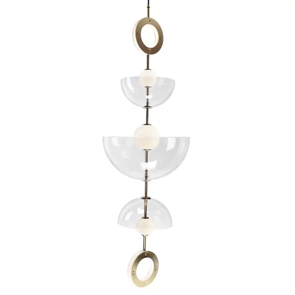 Firenze suspension lamp, designed by Ettore Sottsass and manufactured by Venini, features handmade blown glass colored elements and crystal color discs. Numbered edition. Indoor use only.Dimensions: Ø 40 cm, H 80 cm.