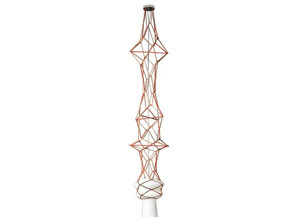 Stelle Filanti suspension lamp, designed by Atelier Oï and manufactured by Venini, features a leather structure. Available in three different colors. Indoor use only.Dimensions: Ø 30 cm, H 220 cm.