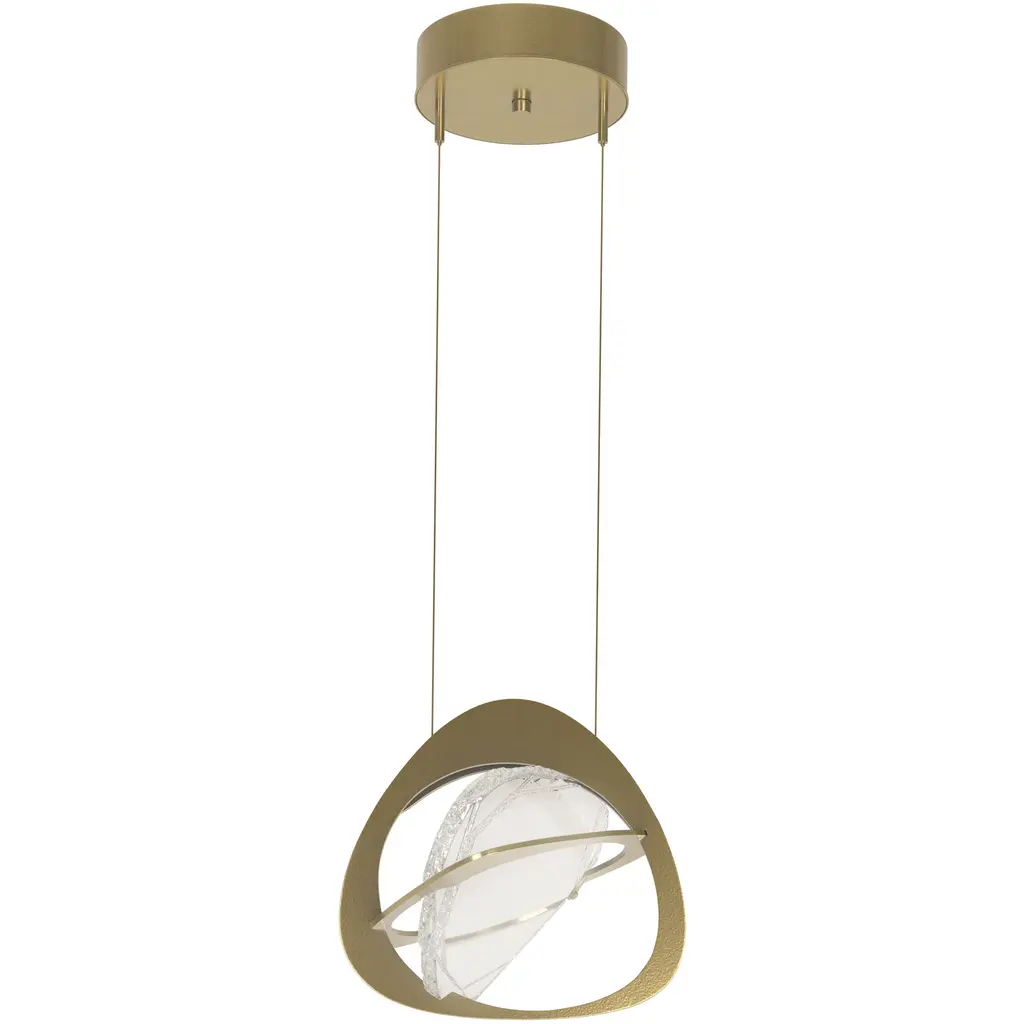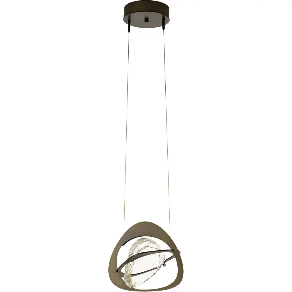 The Venn pendant embodies overlapping steel forms as they embrace a single piece of cast glass. This timeless and transitional style provides a beautifully uncomplicated lighting choice.