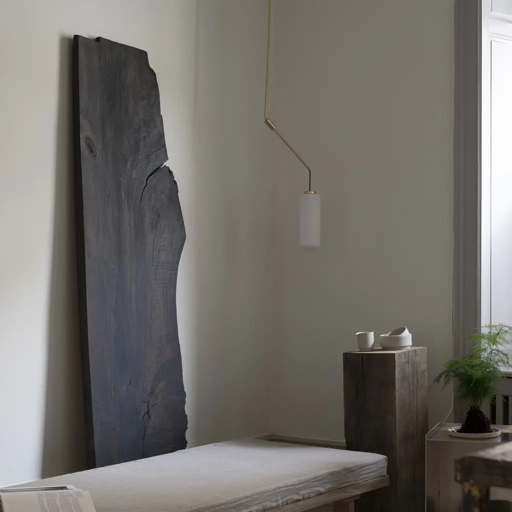 Lighting with an architectural twist to give your home a stylish touch. Created in a collaboration between Copenhagen-based brand Frama and Danish designers Included Middle, the Ventus Pendant Lamp features a creative take on minimalist design. The traditional flexible cord becomes a solid element, bending at different angles to give the lighting a sculptural character. Apart from the brass tube and bronze silicone, the lamp features an opal white glass shade that softens the glow of the LED light bulb. Ventus looks fantastic on its own, whether you want to install it in a kitchen or above a dining room table. Alternatively, you can install two pendants at two different heights and create a graceful lighting sculpture.
