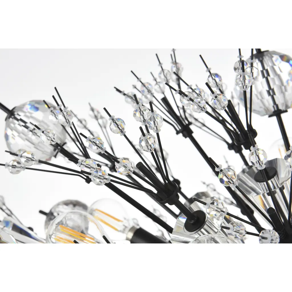 Like an explosion frozen in time, Vera collection hanging fixtures are suspended chaos. Clear large crystal balls and sprays of smaller crystals swirl amidst exposed candelabra bulbs (not included) balanced on dainty wires. A gleaming steel sphere forms the epicenter of the storm. A touch of savage beauty that easily compliments a kitchen, entryway, or bedroom.