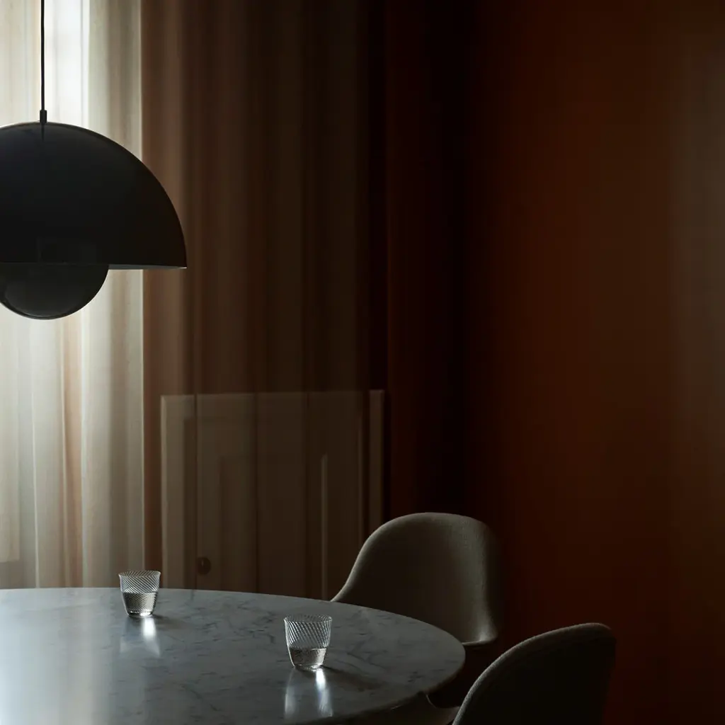 The Flowerpot, a vividly colored lamp with a rounded pendant that hangs from the semi-domed upper shade, embodies the experimental attitude that Danish designer Verner Panton took to home items. As a disciple of Arne Jacobsen and Poul Henningsen, Panton always sought to prioritize the functionalism of furniture design. But he proved far less conventional when it came to his use of new materials and color, working with psychologists to better understand the role that color played in shaping the psychology of an environment. "Most people spend their lives living in dreary, grey-beige conformity, mortally afraid of using colors," he once said, an observation that went on to define his approach to interiors. The Flowerpot endures as an iconic example of his legacy. Created in 1968, it quickly became a visual symbol of the freewheeling Flower Power movement and peace and love ideology that its followers espoused. Perhaps this was because it melded the precision of Danish design to an attitude of individualism, remaining practical while still playful, functional yet fun. "As one of the greats of Danish design, Verner Panton revolutionized the way in which we think about interior design," &Tradition founder and CEO Martin Kornbek Hansen says. "More than fifty years after it was created, the Flowerpot continues to lend its unconventional credentials to homes around the world." A beloved part of &Tradition's collection since 2010, the Flowerpot is now available in a new mid-sized option designed to fit perfectly over a dining table. Two additional colors, red-brown and light blue, have also been added to the range.