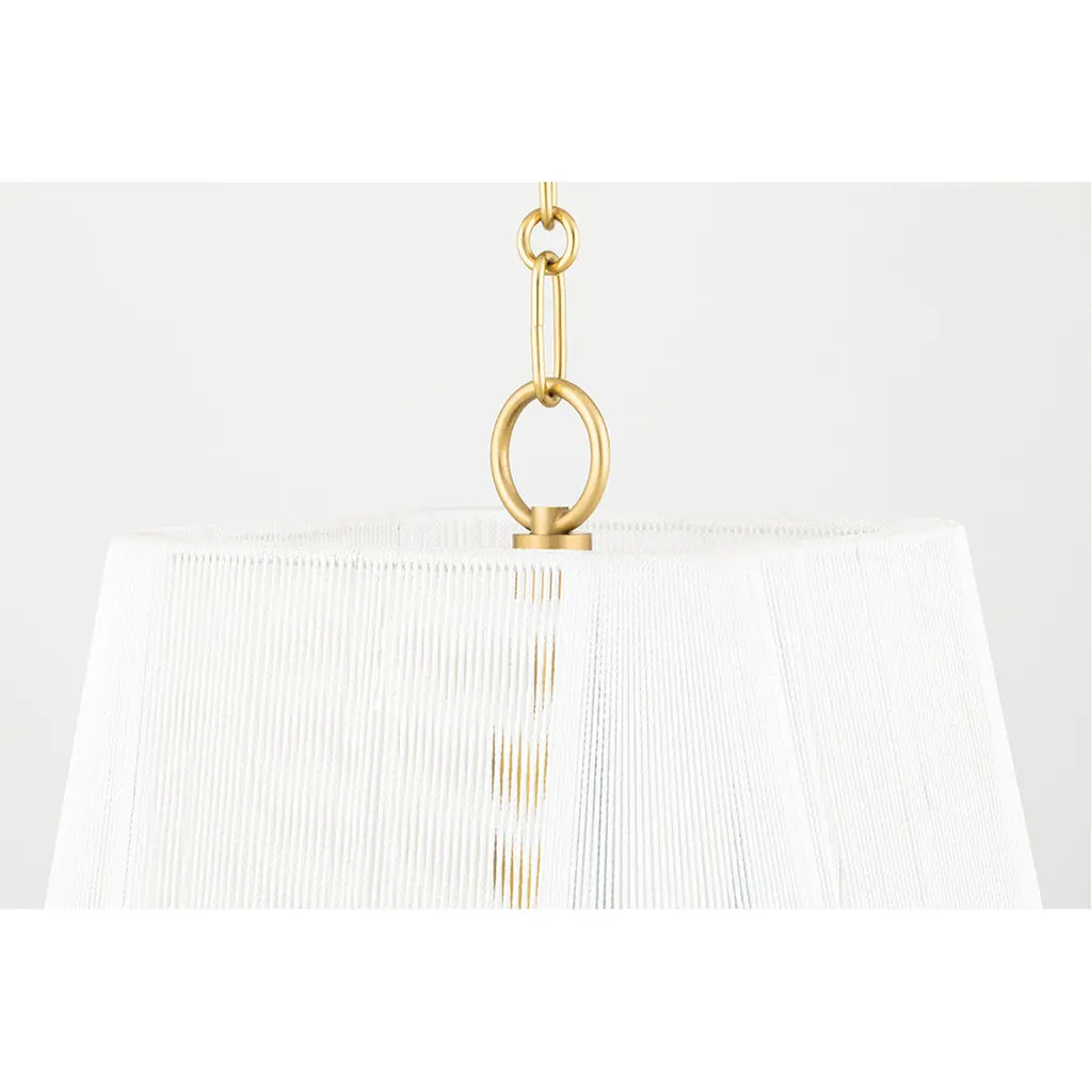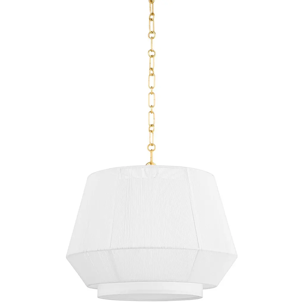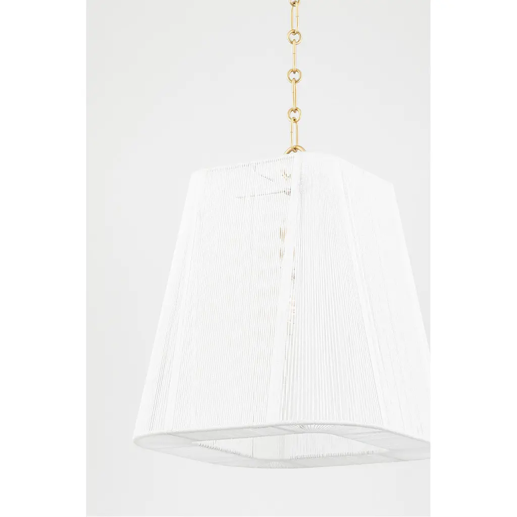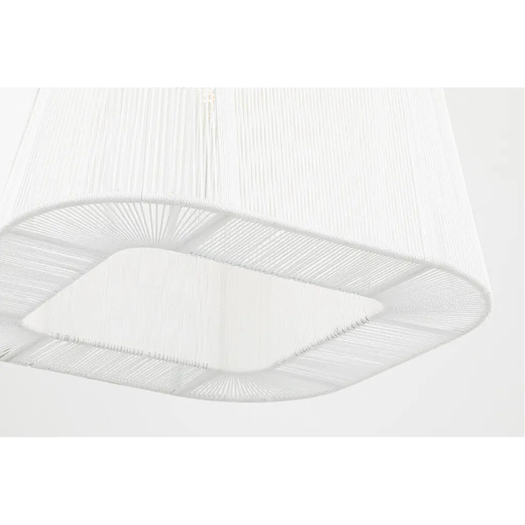 Clean and crisp, Verona Beach is the perfect blend of function and beauty. Light flows freely through the natural string shade while the smooth shape and rounded corners bring out the softness. The white nylon string is less dense at the corners, adding a sophistication to the design without losing the natural feel. Available as a flush mount, linear and pendant with aged brass or old bronze finishes.