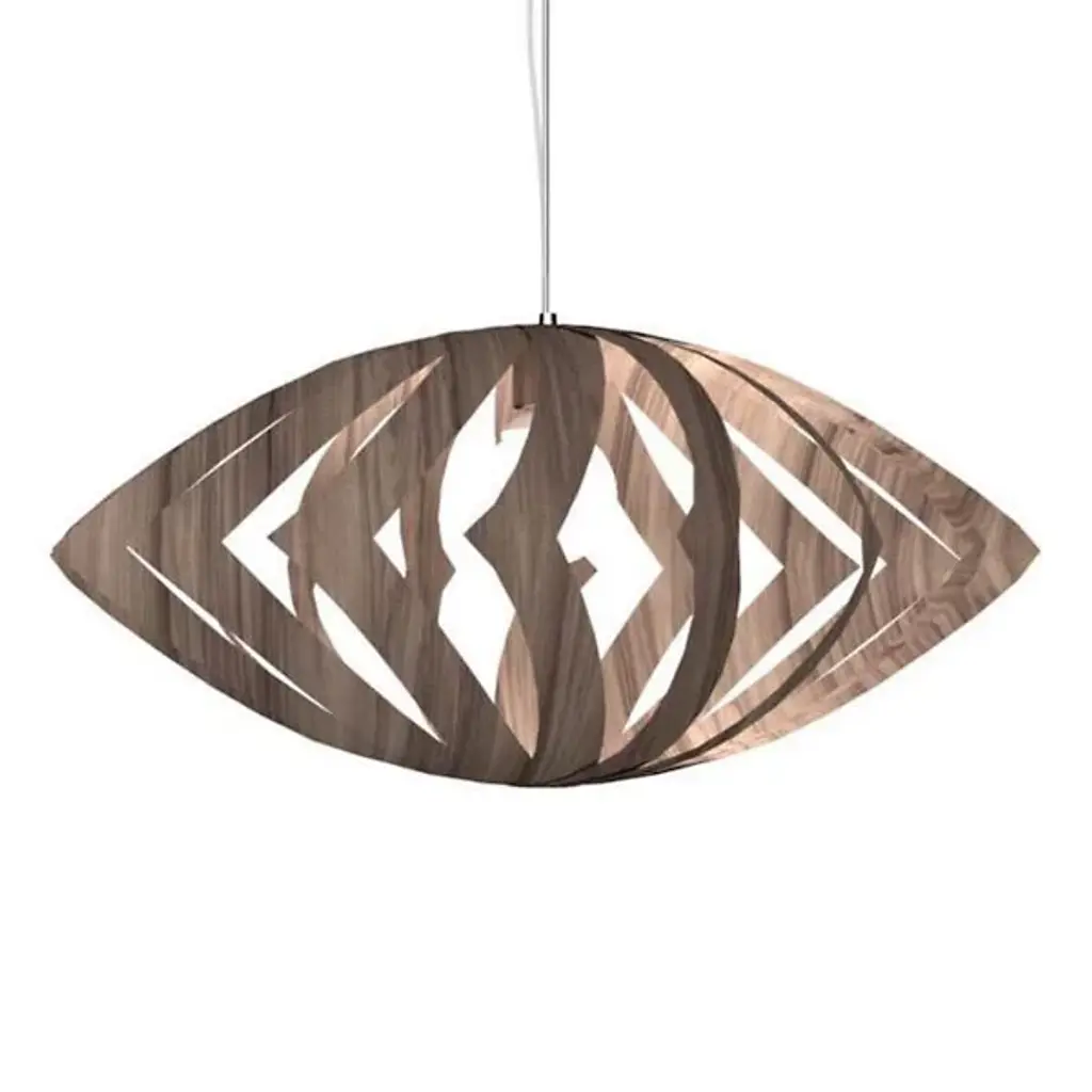 A piece of functional art defined by its natural character. Add a bit of drama to your rooms with the flowing abstract design of the Versatile Pendant Light from Accord Lighting. Its name is well earned, serving as a beautiful light source anywhere from a foyer or dining room to a kitchen. Accord Lighting harnesses the craftsmanship and natural resources of its native Brazil in this sophisticated piece. Natural wood segments are elegantly arranged to create an abstract form that’s big with depth. The structure’s beautiful wood grain stands out as light glazes over its surface. The single bulb creates a filling glow and a striking silhouette to match.
